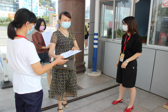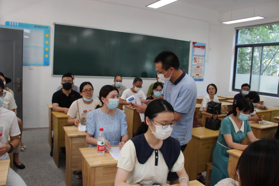 随后,曹金花主任组织全体导护人员进行了开学前新冠肺炎疫情防控应急培训及演练活动。此次演练包括了体温检测、体温检测异常情况处置、学生胸卡检查、学生晨检、晨检异常处置、晨检报告流程、防疫用品的使用方法等项目。全体导护人员分为两组:一组老师担任工作人员,一组老师模拟学生。