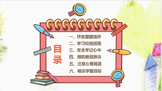 课后,同学们在观看影片后,纷纷畅谈了暑假的感受和新学期的计划,向新学期坚实迈进,准备迎接新的挑战。