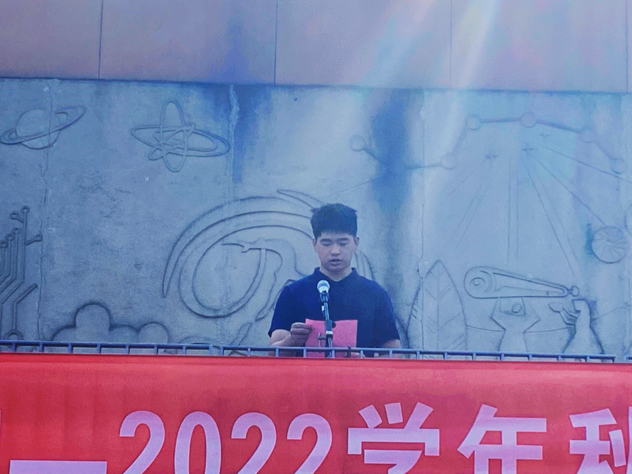 九4班许振超学作为学生代表发言。他对初三的同学进行了勉励,希望大家都能够惜时如金,努力拼搏,以新的姿态和面貌去迎接新的挑战,取得新的荣誉,再创新的佳绩。