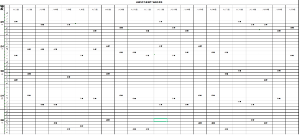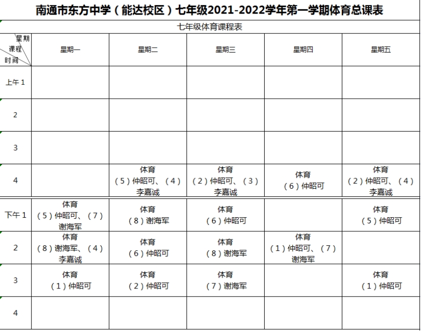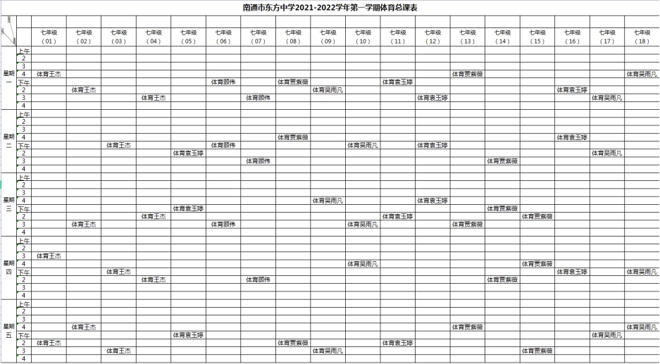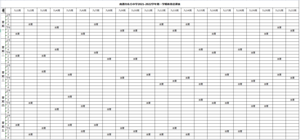 南通市东方中学2021~2022学年度第一学期各年级体育总课表