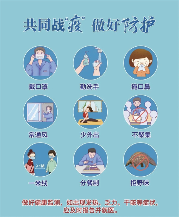 3. 自觉遵守公共卫生守则,不随地吐痰,避免病毒通过呼吸道交叉感染,用过的口罩统一放医疗垃圾桶。