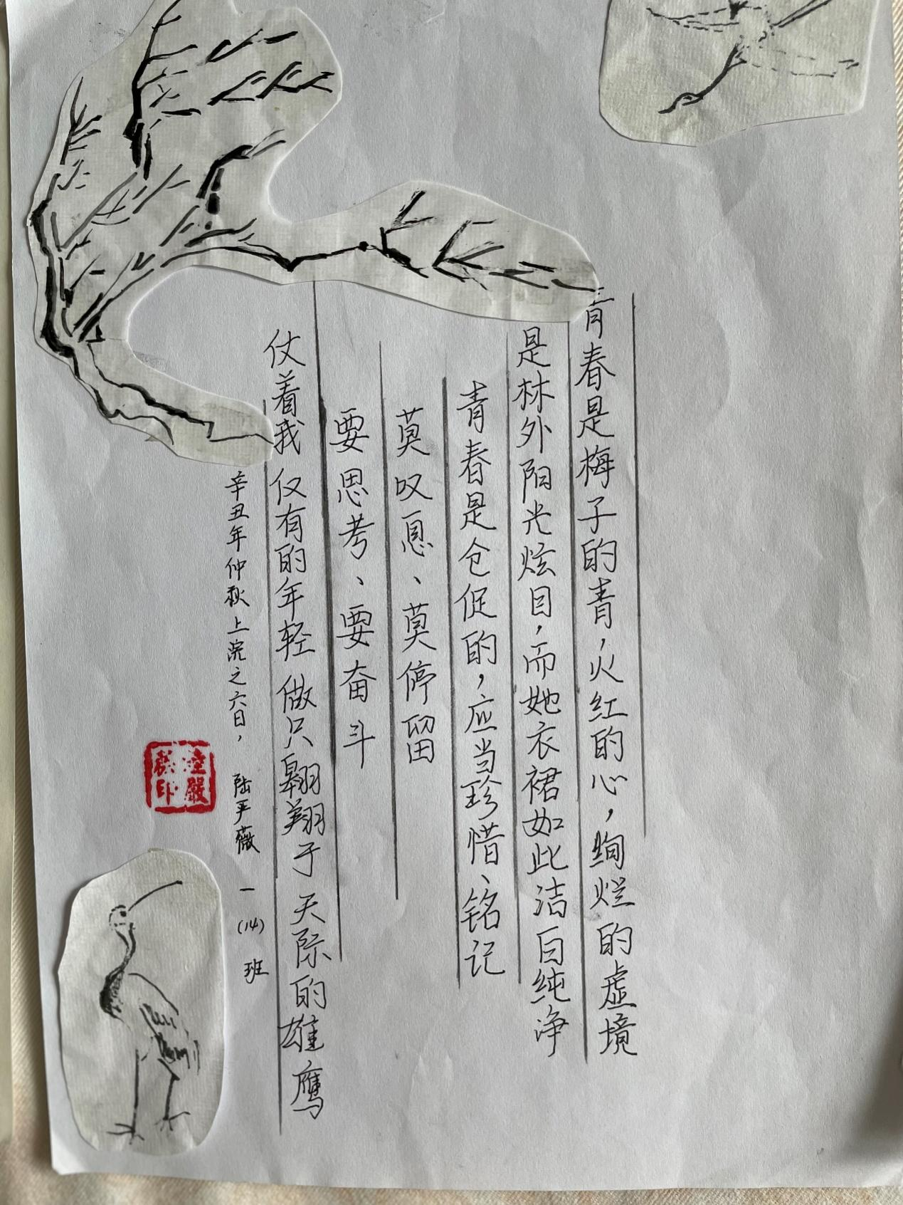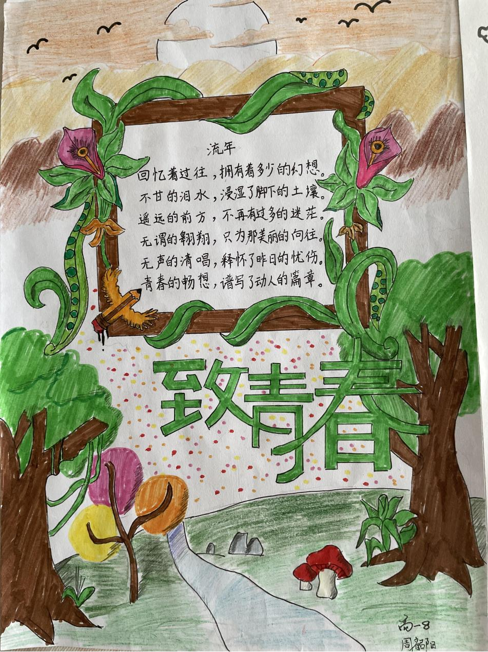 同学们在诗作中抒发了自己对青春的吟唱:或回味校园,或感悟人生,或思考未来,绘画、书法等别样的形式,更是增强了诗歌的观赏性。
