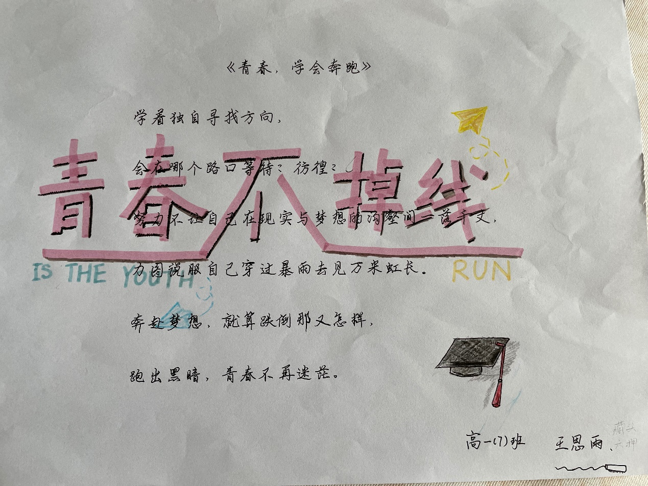 我校高一语文备课组以课本内容为依托,以引导学生理解青春的思维风暴的课堂作为支架,在开学第一周决定举办“青春的诗言”六行小诗创作活动,希望高一年级的同学们,能够感受自己的生命状态,探寻生命追逐的方向,用诗性的语言审美再现自己的青春与梦想。