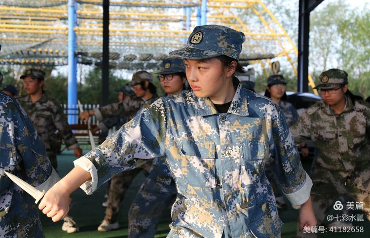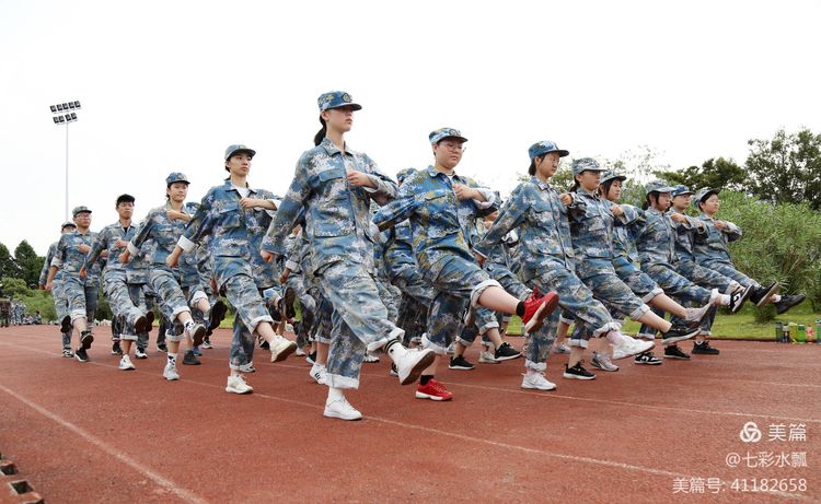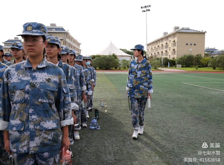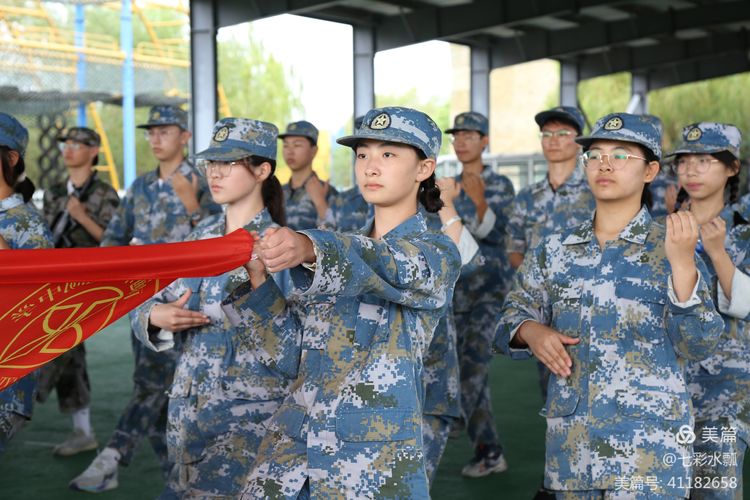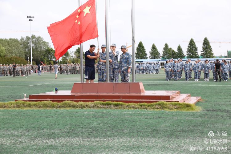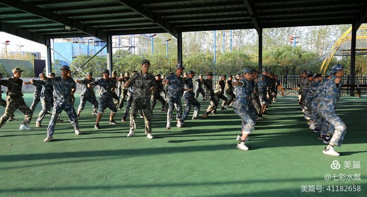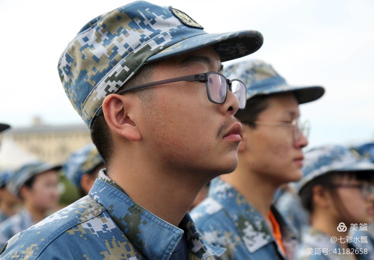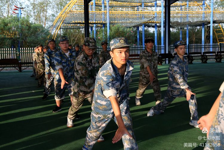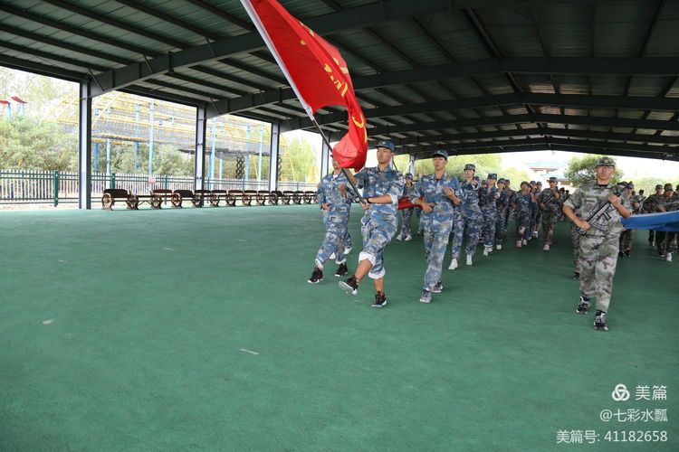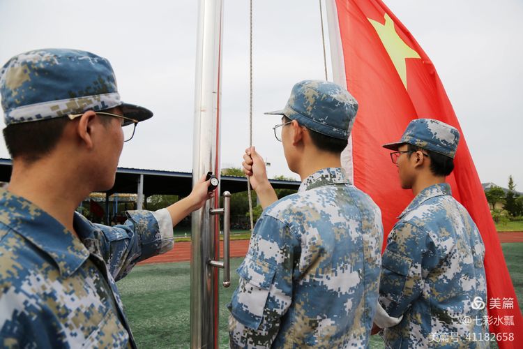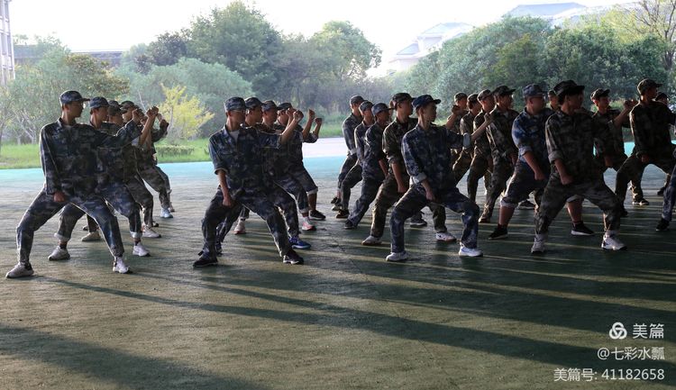 今天的朝霞特别的美,瞭亮的军歌声伴随着太阳升起,海滩上的风车不急不慢的旋转着,虽在金秋,天气还是有点点的闷热。军训增加了呼口号和唱军歌训练项目 ,国旗班和军体拳班开始分组训练。
