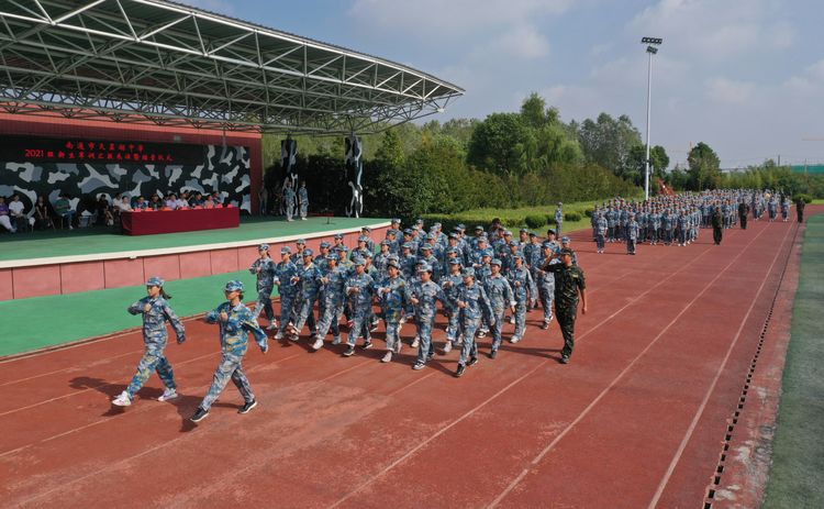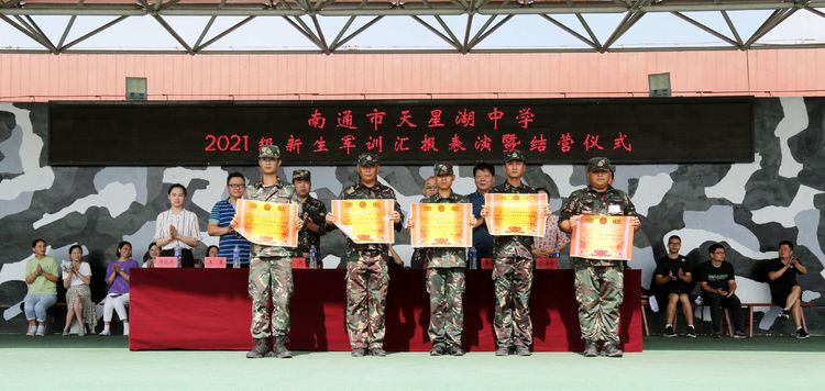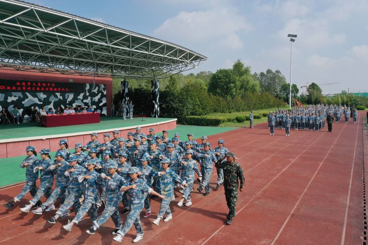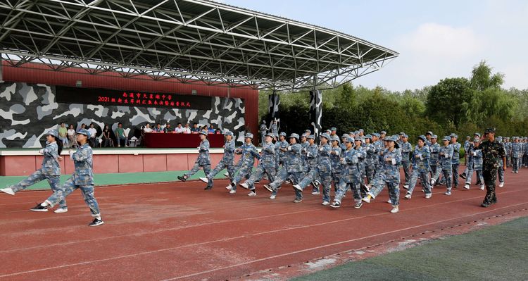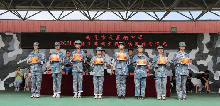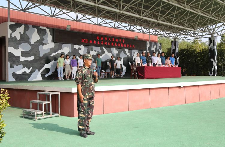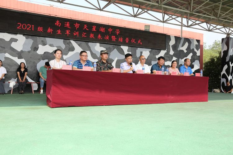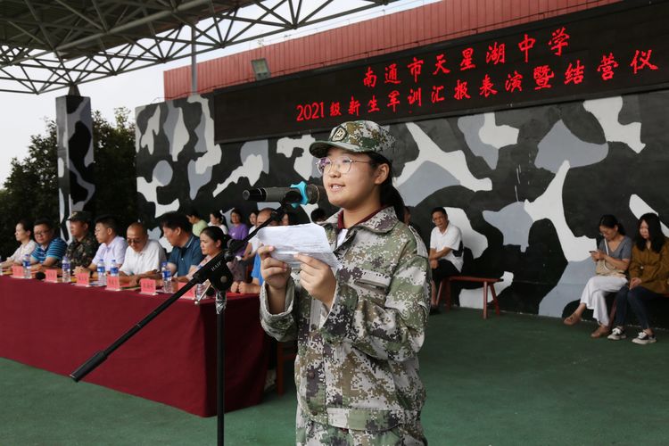 “铁甲带着硝烟走来,战舰带着浪花走来,雄鹰带着白云走来,三军将士筑长城,祖国请检阅"。南通市天星湖中学2021级高一新生军训结营仪式在上午9时正式开始。军旗迎着海风在飘扬,由教官和学员组成的受阅方阵,个个精神抖擞,斗志昂扬,接受首长的检阅。六天来,学员们按照训练大纲要求,服从命令、遵守纪律、严格要求,以顽强的意志圆满完成了军训任务。通过军训学员们磨练了自己,锻炼了的生活能力,增强了组织性、纪律性和集体荣誉感。军训结束了,但他们人生的道路还更长,相信经过军营的磨练,将来会勇敢战胜各种艰难困苦。