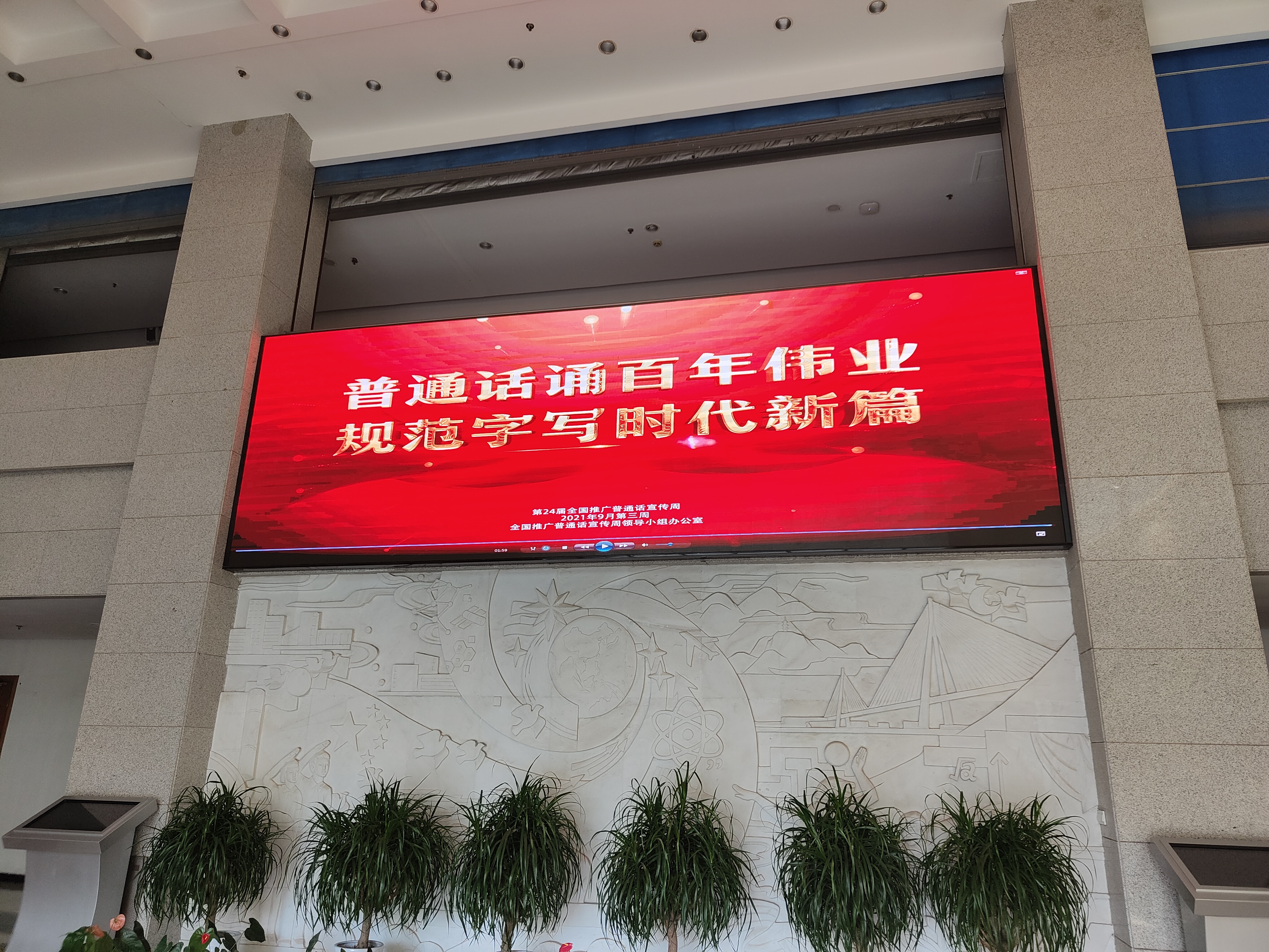 为做好普通话推广,学校充分利用宣传橱窗、电子屏幕、黑板报、校园广播等形式开辟“推普”宣传阵地,多种宣传形式时刻提醒全校师生增强语言文字的规范意识和推广普通话的参与意识。