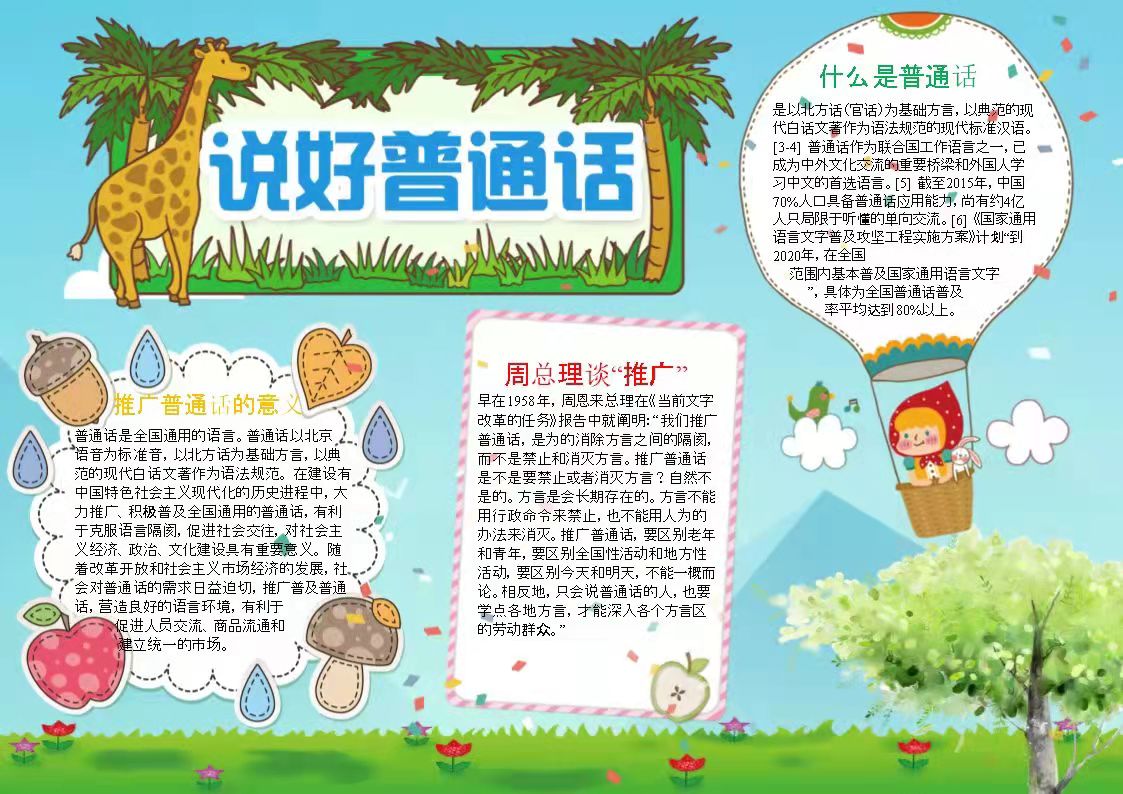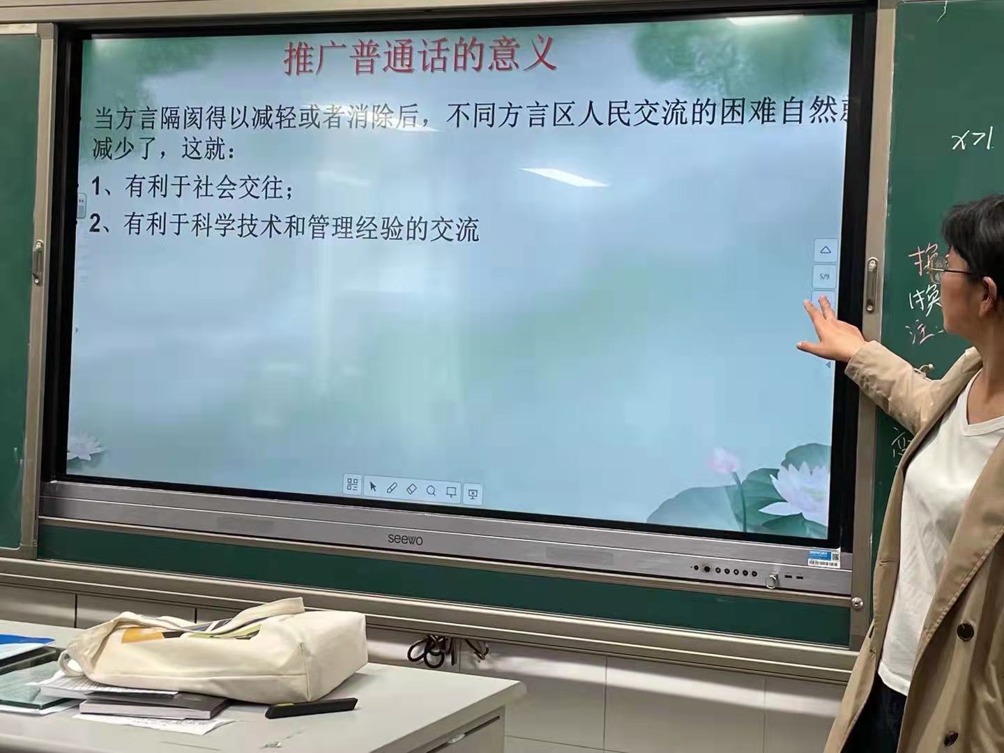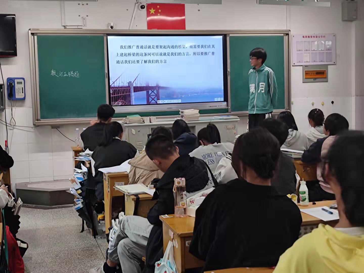 同时,各班召开了“讲普通话、用规范字、做文明人”主题班会,结合“第24届全国推广普通话宣传周”活动,从什么是普通话、推广普通话的重要性等方面对学生进行宣传。通过宣传和讲解,同学们更深入、更系统地了解普通话在帮助个人成长、传承革命精神、铸牢中华民族共同体意识等方面的积极作用,激发了同学们说普通话的热情,促使同学之间互相督促、互相鼓励,养成讲普通话的习惯。