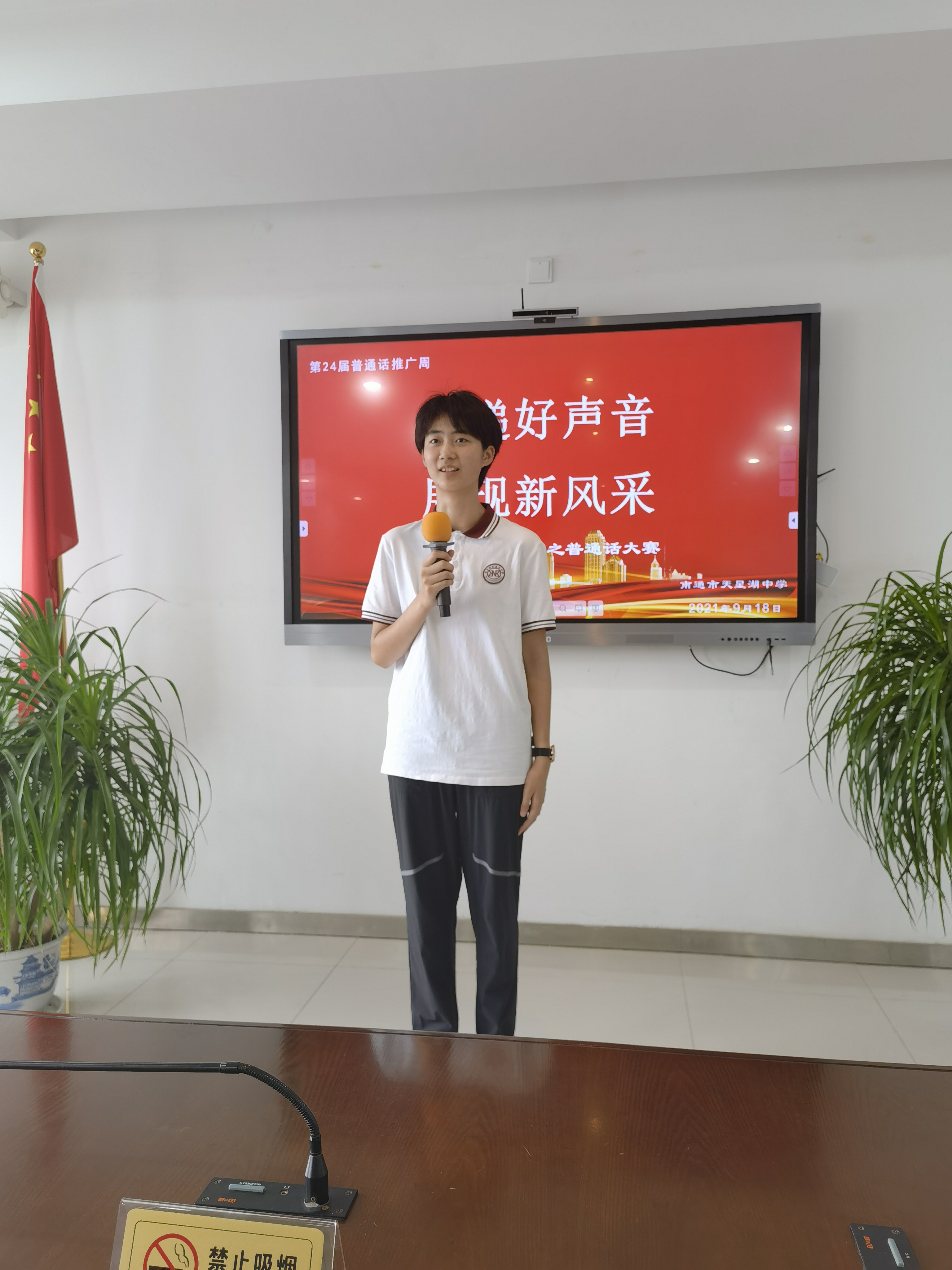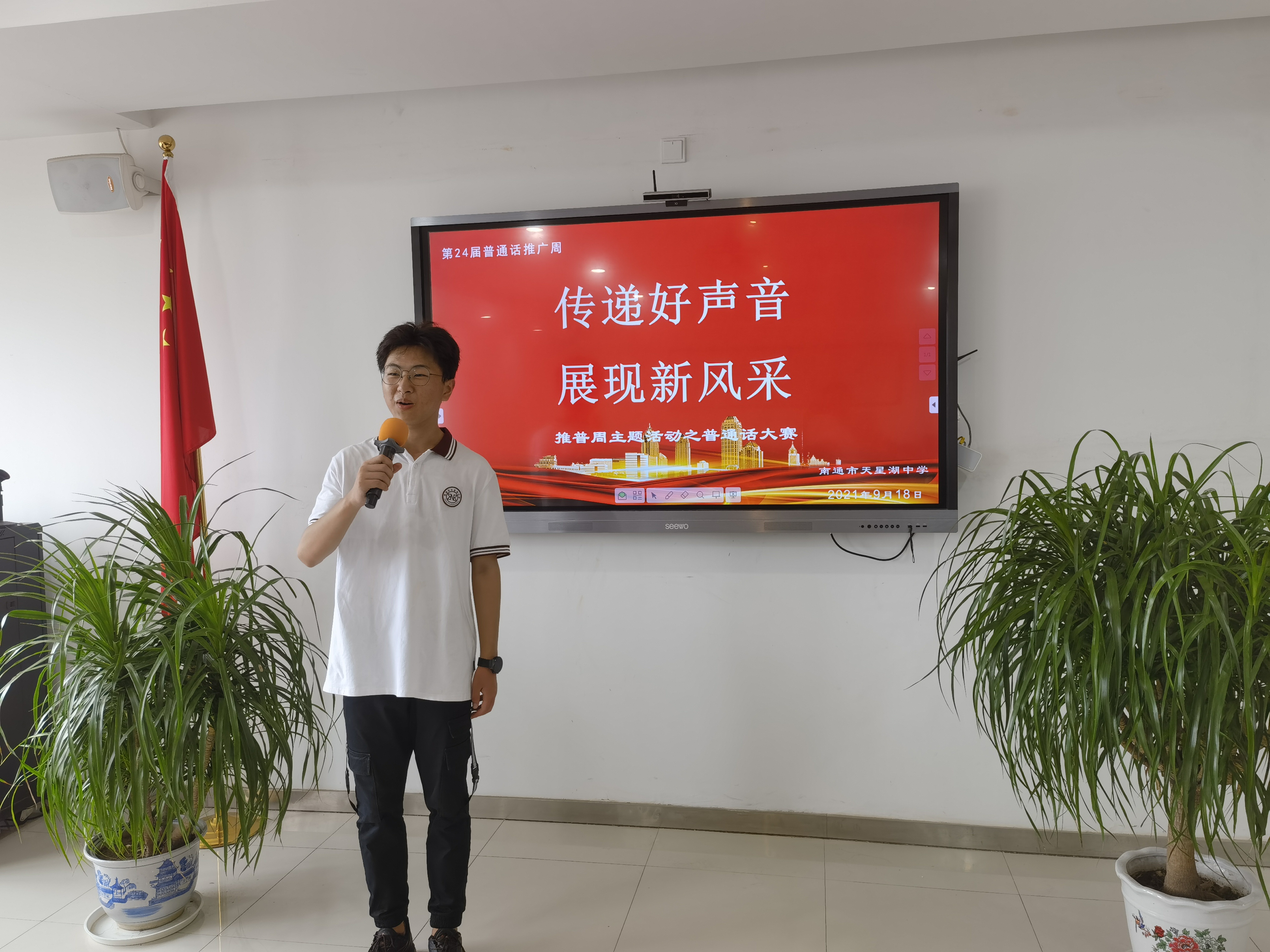 第24届全国推普周活动以“普通话诵百年伟业,规范字写时代新篇”为主题。推普周期间,南通市天星湖中学团委联合学生处积极开展了各具特色的推广普通话系列活动,既宣传了国家语言文字法律法规和方针政策,又弘扬了爱国主义精神。