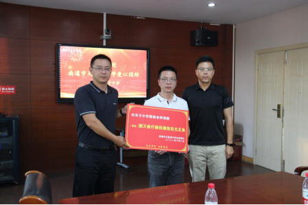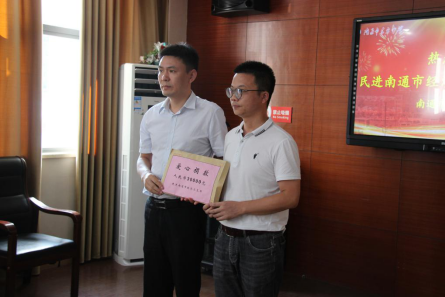 10月8日下午,民进南通市经济二支部、南通市天星湖中学等领导来我校为顾娟老师捐款。