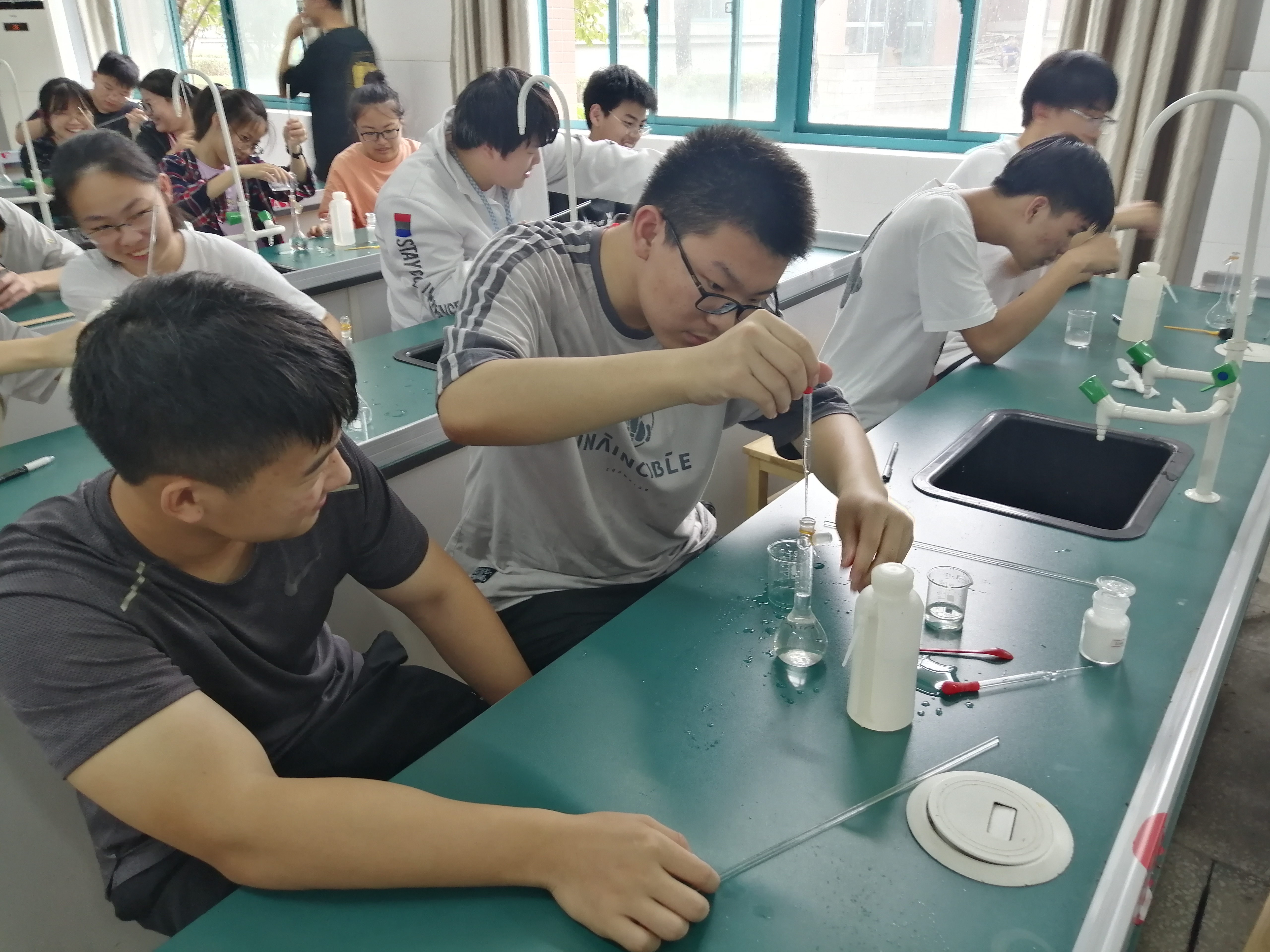 物理、化学、生物等学科老师也借着此次科技节,利用学校已有素材,结合实验课、通用技术课,带领学生走进实验室,提高学生实际动手操作能力。