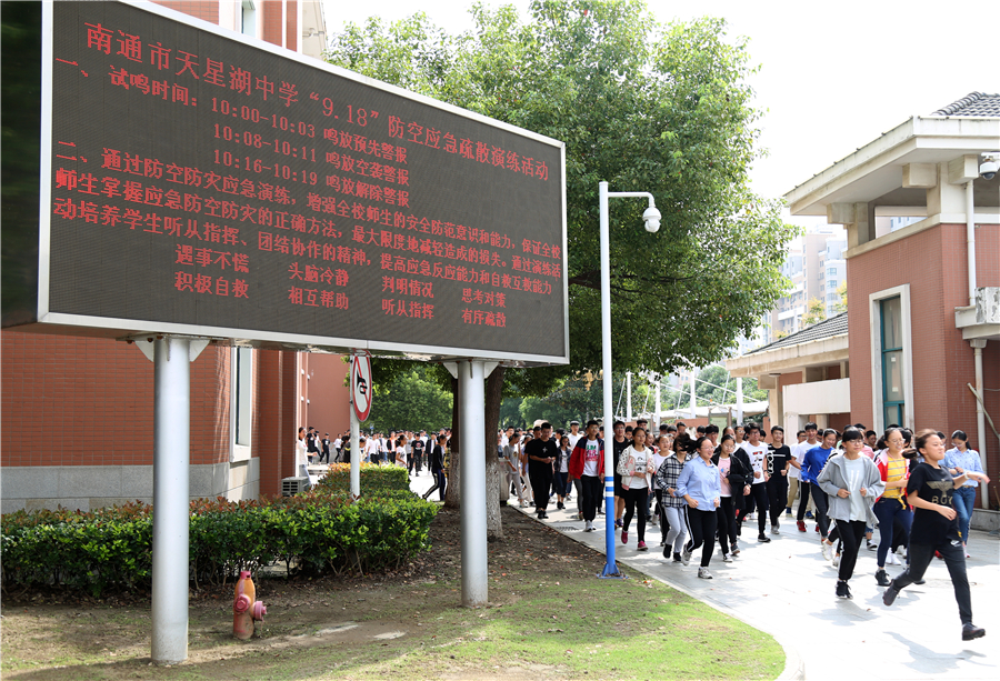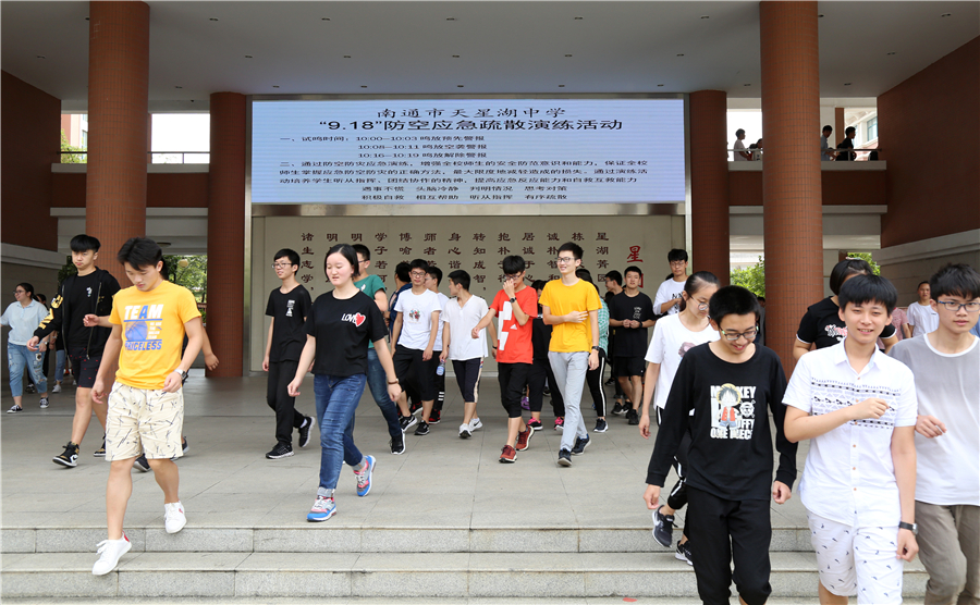 为增强广大师生的防空防灾意识,提高师生应对突发事件和防空防灾能力,天星湖中学成功开展了“9.18”防空防灾疏散演练活动。