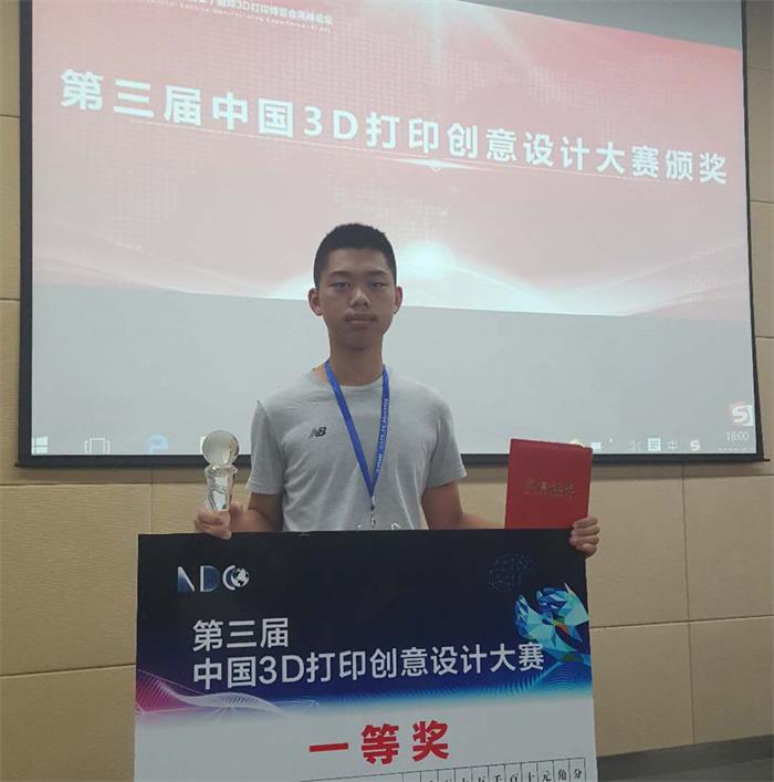 高一黄亿禾同学喜获全国3D打印创意设计大赛一等奖