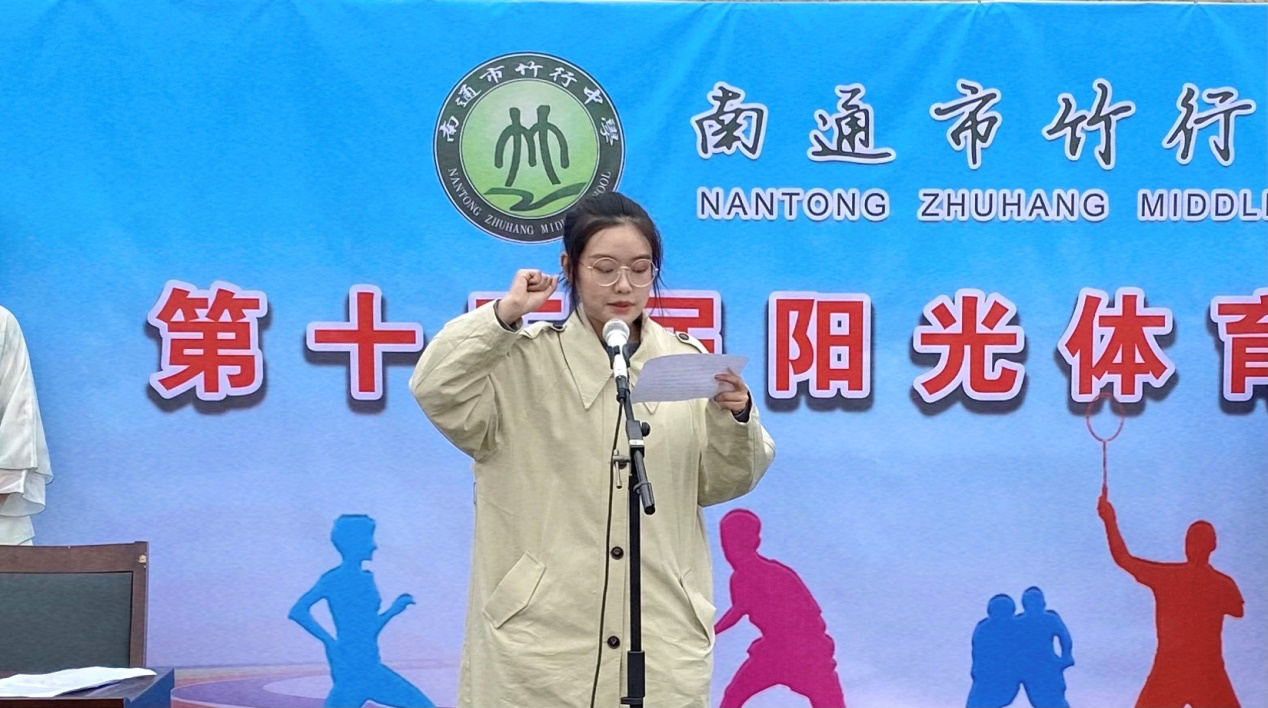 随后,裁判员代表陈琪老师与运动员代表郑昊同学庄严宣誓:严格遵守比赛秩序和纪律,恪守公平、公正、公开的比赛原则,追求卓越,奋勇拼搏,向“更高、更快、更强”的目标前进。