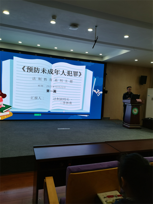 在桂花飘香的十月,每月的法治副校长大讲堂又开讲啦!10月22日我校有幸邀请到江海派出所李林勇副所长为同学们进行法治讲座。姚敏校长、储德杰副校长和八年级师生参加了此次活动。活动由德育处张丽梅主任主持。