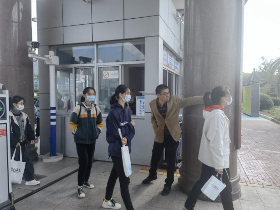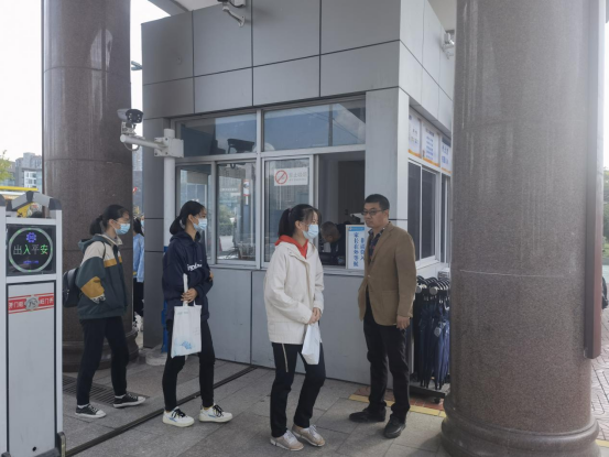 在疫情防疫的形势下,各选手佩戴口罩,测量体温,有序进入指定考场。