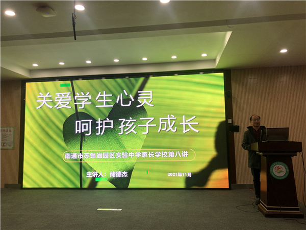 关爱学生心灵 呵护孩子成长 ——南通市苏锡通园区实验中学家长学校第八讲