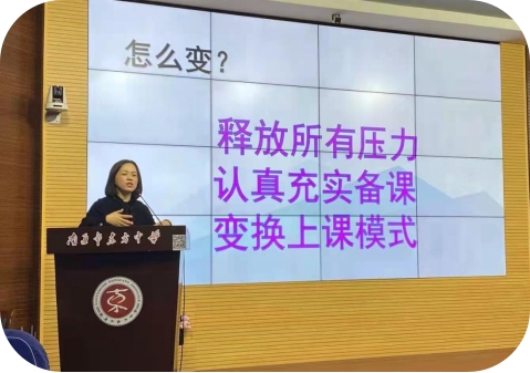 最后,宋主任对现阶段的青年教师如何改变提出了三点建议:一、释放所有压力,二、认真充实备课,三、变换上课模式。