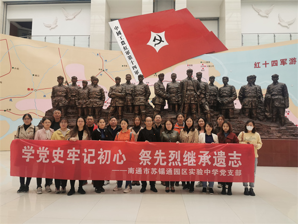 为庆祝建党一百周年,弘扬红色精神,11月7日,苏锡通园区实验中学党支部组织党员同志赴如皋红十四军纪念馆开展主题党日活动,缅怀革命先烈,接受党性教育。