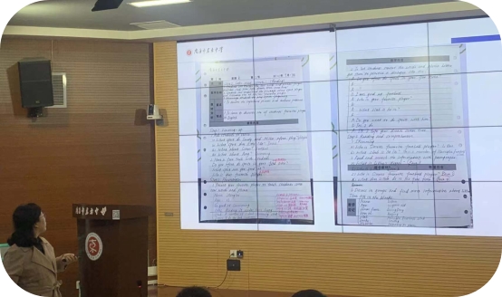 热闹的讨论过后,郭校长对老师们的目标表述进行了理论和实际操作的指导和纠正,将设计的想法转化为实际的表述才是目标设计的真正完成。