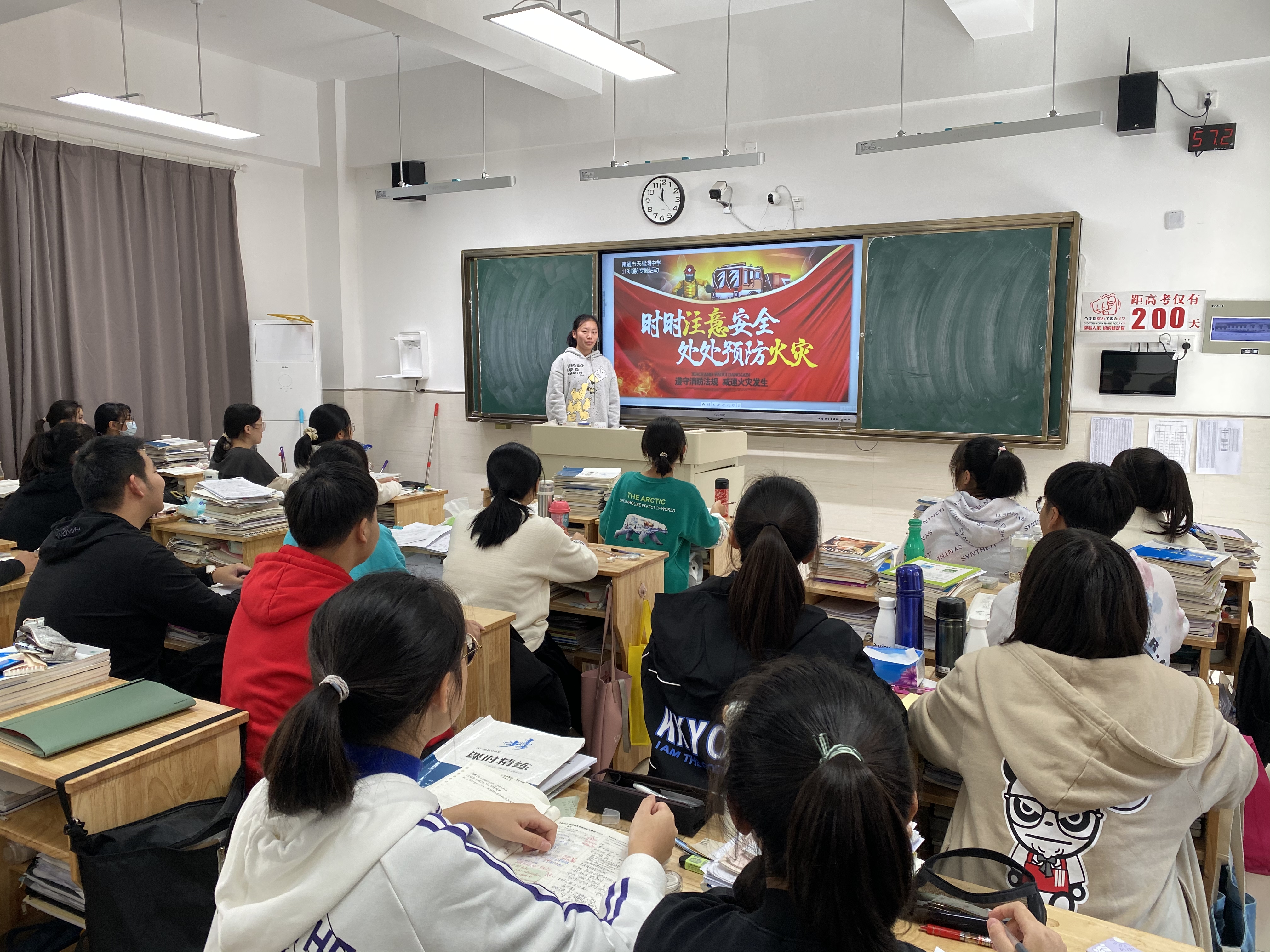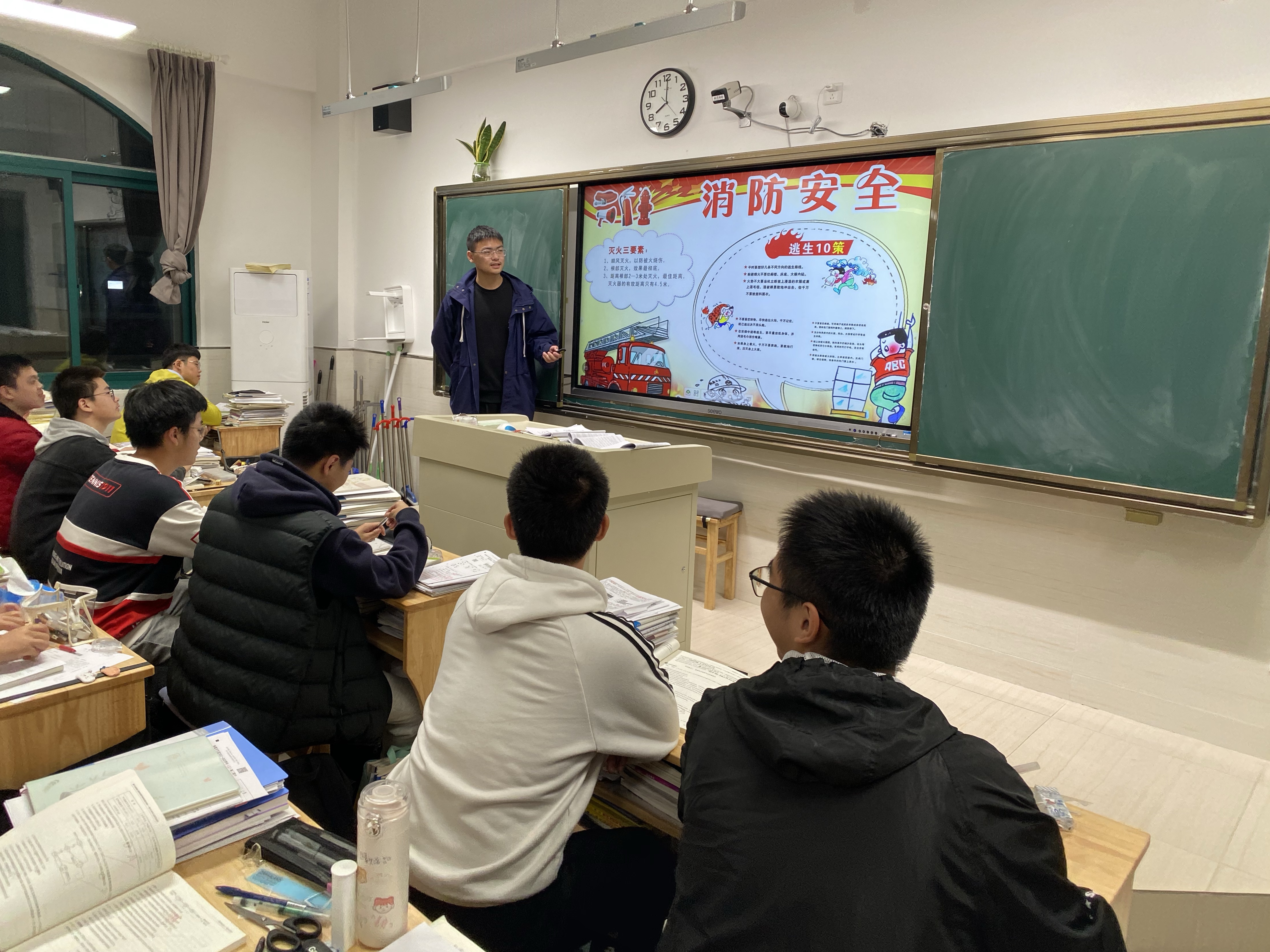 此次班会,同学们懂得了“三懂”、“三会”。“三懂”即懂得火灾的危险性,增强消防意识;懂得火灾形成的原理,不携带易燃物品进校园,不玩火;懂得火灾预防,积极开展消防宣传。“三会”即学会火灾报警方法,学会使用灭火器扑救小火,学会火灾自护自救的方法。
