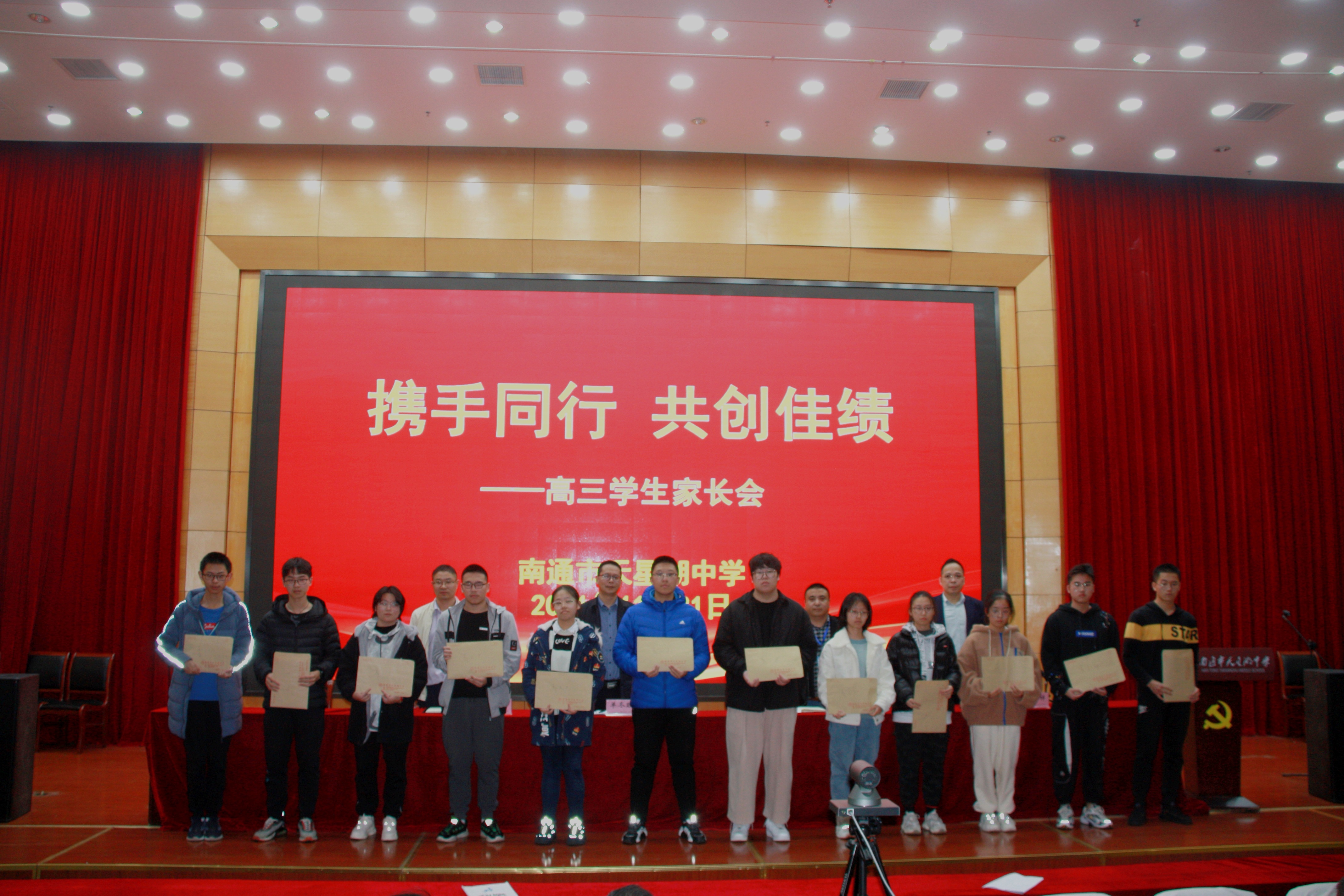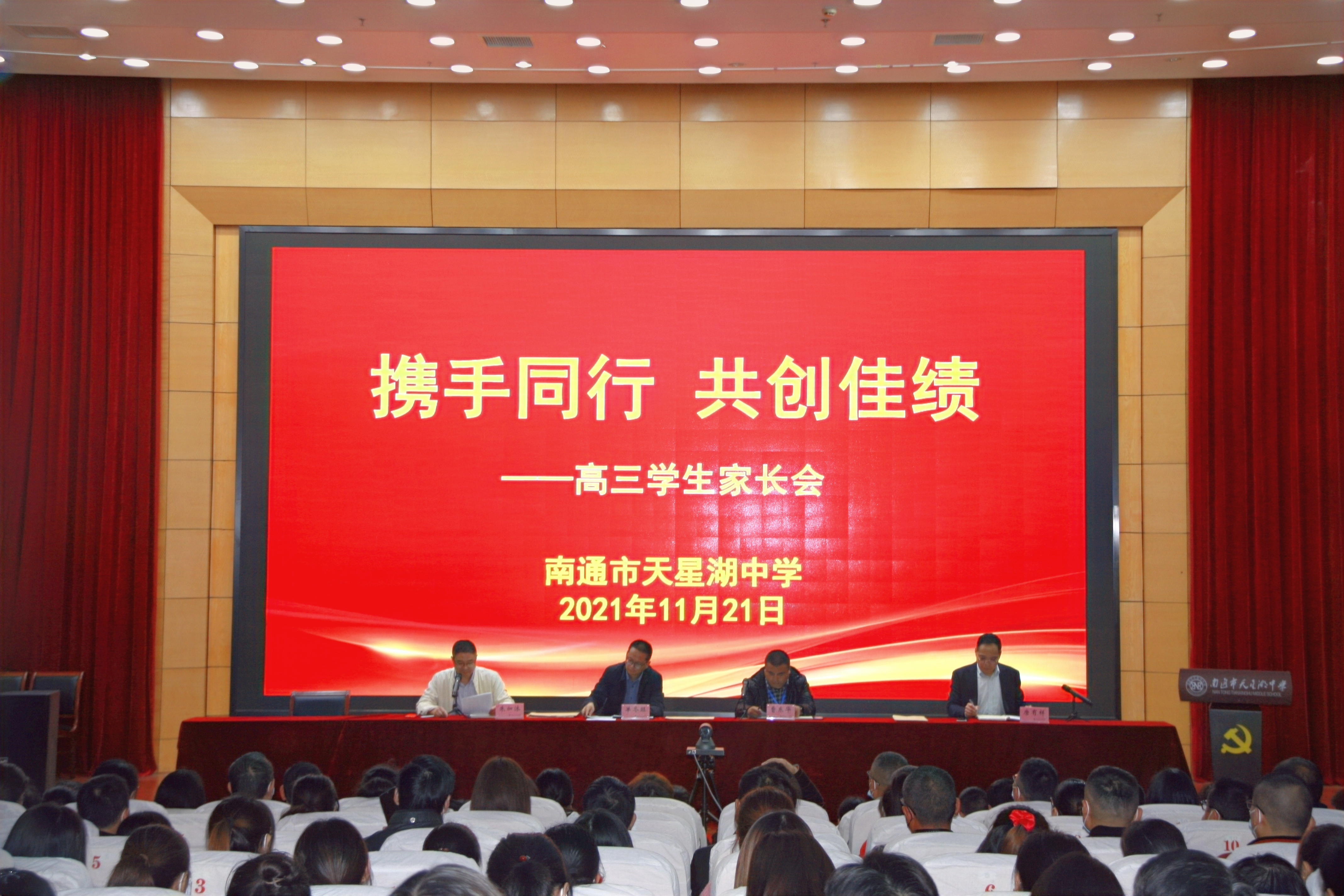 本次家长会在高三年级组精心筹备下,按上级疫情防控要求,错时分班进行。在学校报告厅主会场中,教务处分管高三年级教学的朱加沐主任首先解读了新高考方案,分析了市直高三期中统考情况,并宣读各班优秀学生的表彰决定。