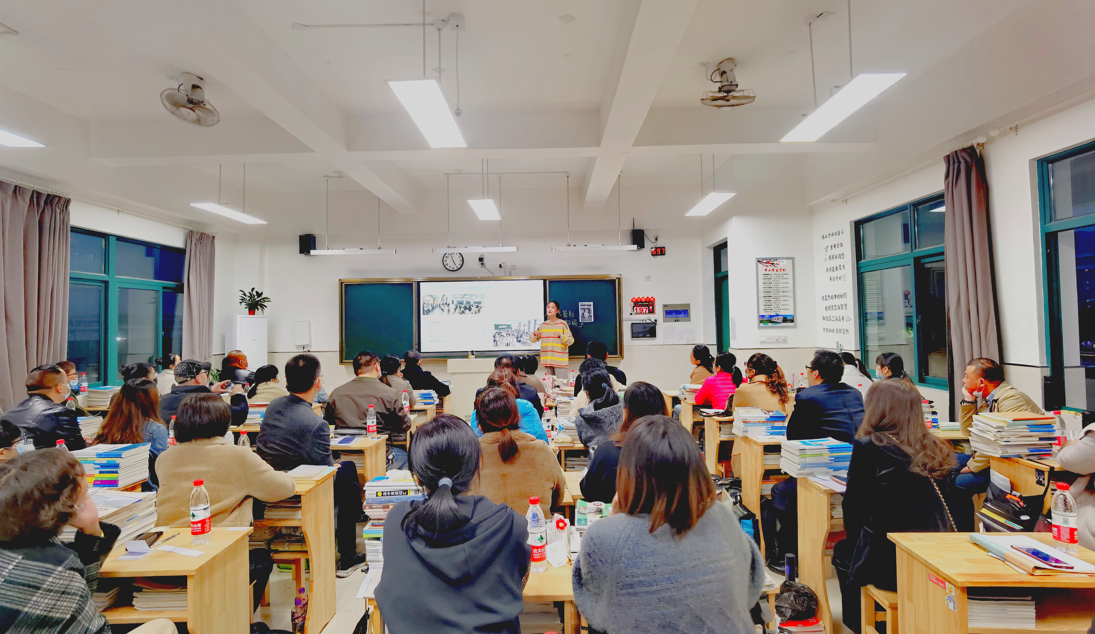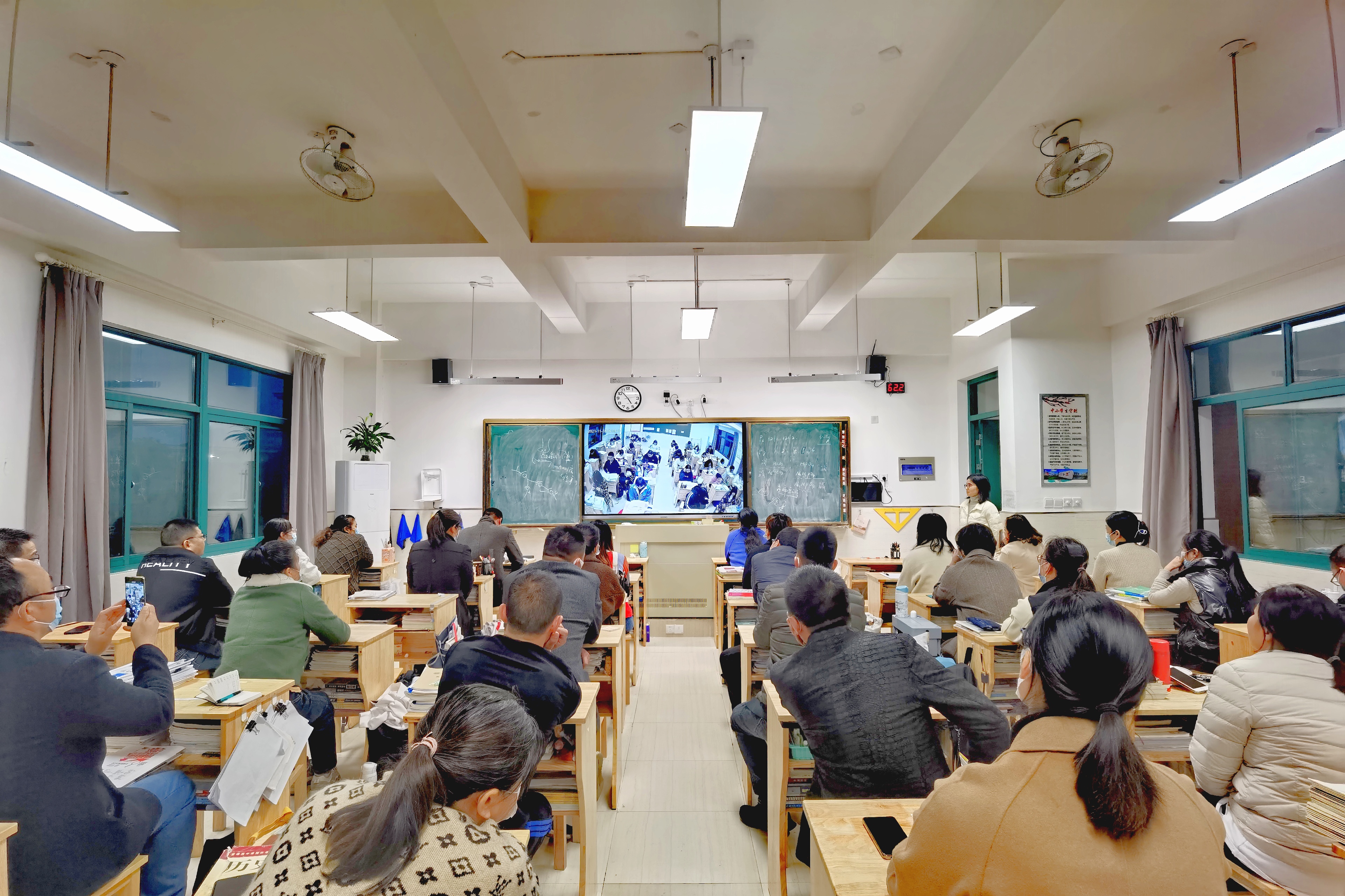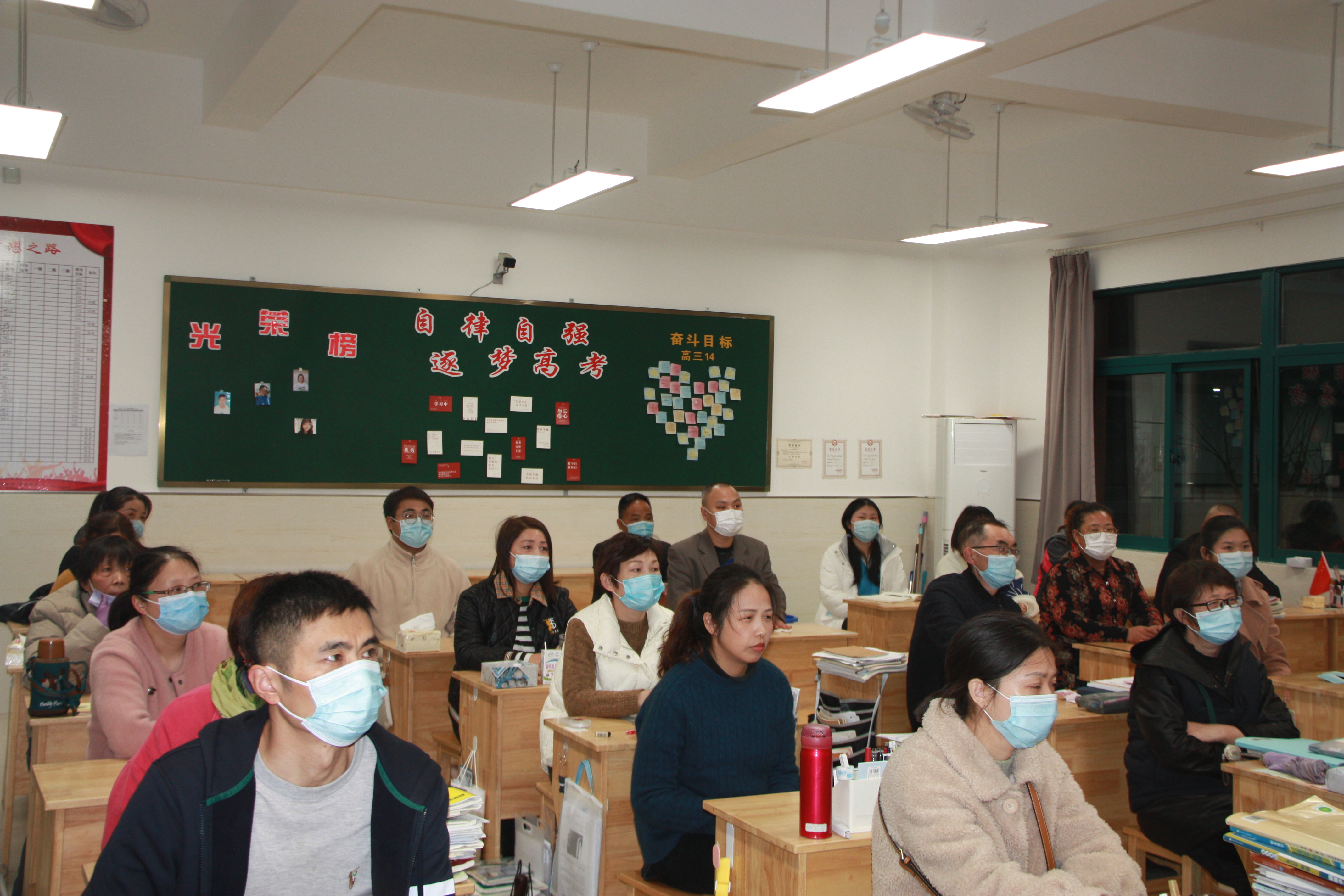 在高三各班的分会场中,先集中收看主会场直播会议,随后班主任以PPT的形式把家长会的内容展示给家长,介绍了本班的实际情况,具体分析了学生的考试成绩。同时还提出了孩子们学习等各方面的家庭教育建议和需要家长们配合的问题。家长们认真聆听,积极参与讨论。通过交流,家长们获得了许多具有参考性、可操作性的家庭教育方法,对如何尊重和关爱孩子,如何培养孩子的好习惯也与班主任达成了共识。