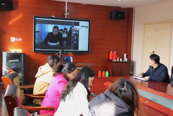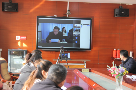 22日上午9时,东方中学乐英楼底楼会议室座无虚席,东方中学校长室成员,办公室、政教处、教务处、教研组长、备课组长、教师代表相聚大屏前,等待与陕西省城固县朝阳中学、陕西省城固县第五中学的领导老师们连线进行线上会议,共同商讨集体备课策略。