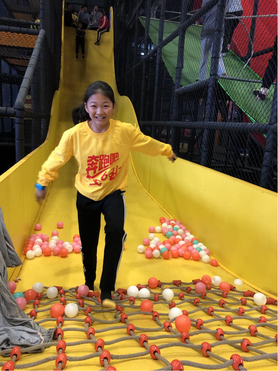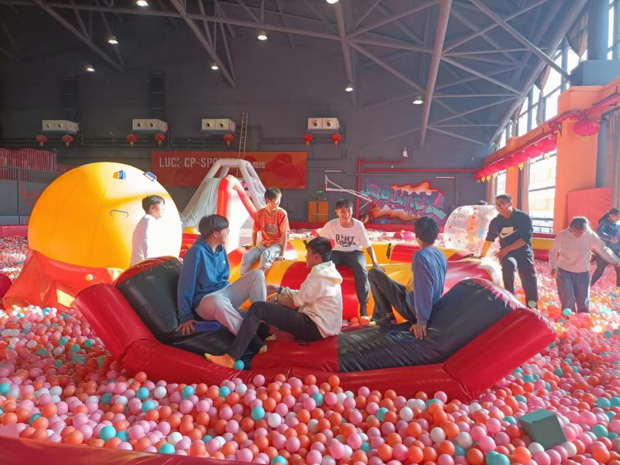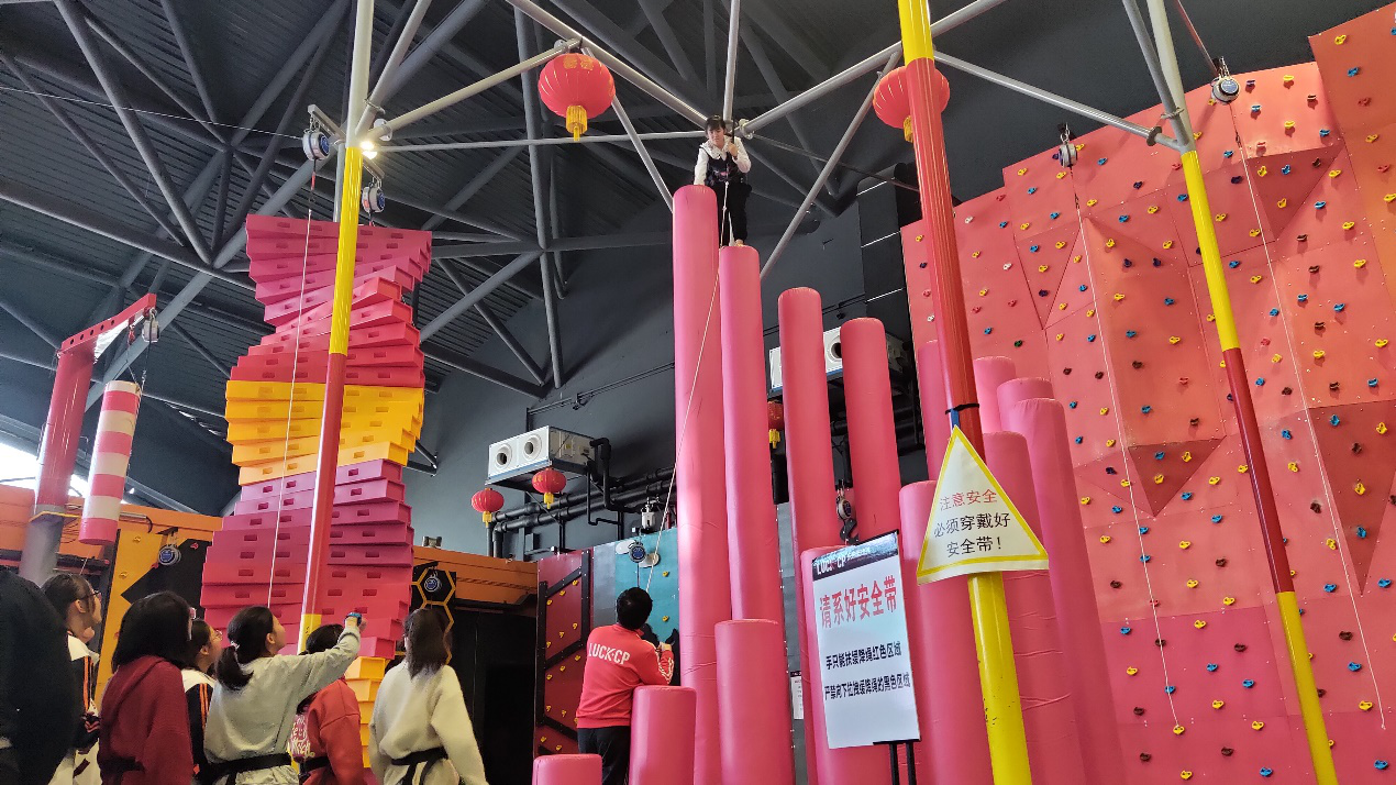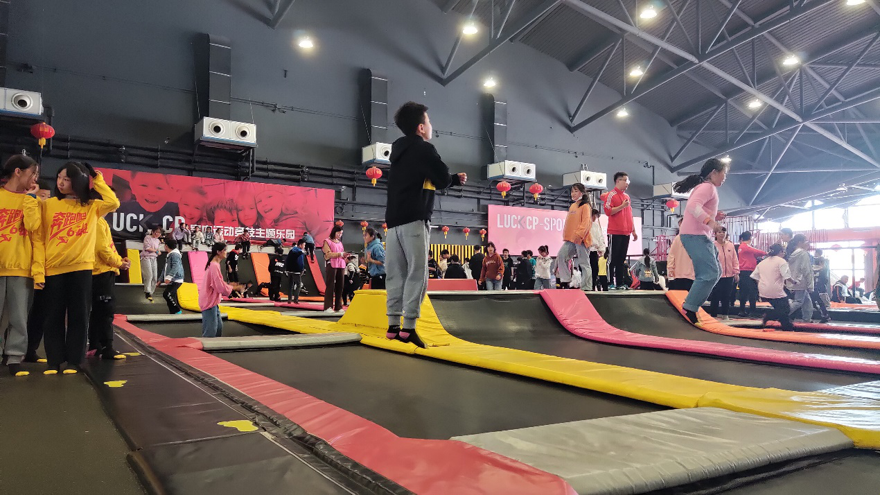 乐园内活动项目丰富多彩,蹦床、海洋球池、多人秋千、波浪滑索、拓展架、梅花桩……