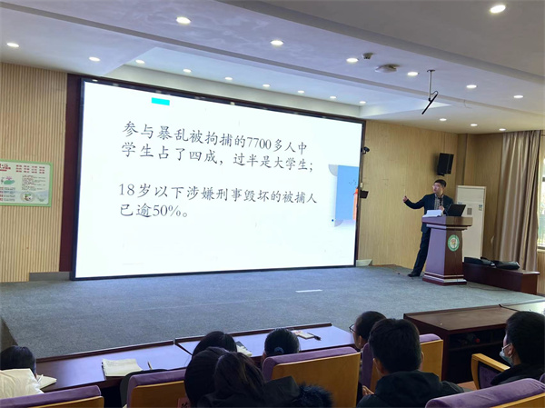 讲座后,储德杰校长作总结发言。他呼吁同学们在维护安全的行动中量力而行,正确行使自身权利,履行公民义务,共同维护国家的长治久安。