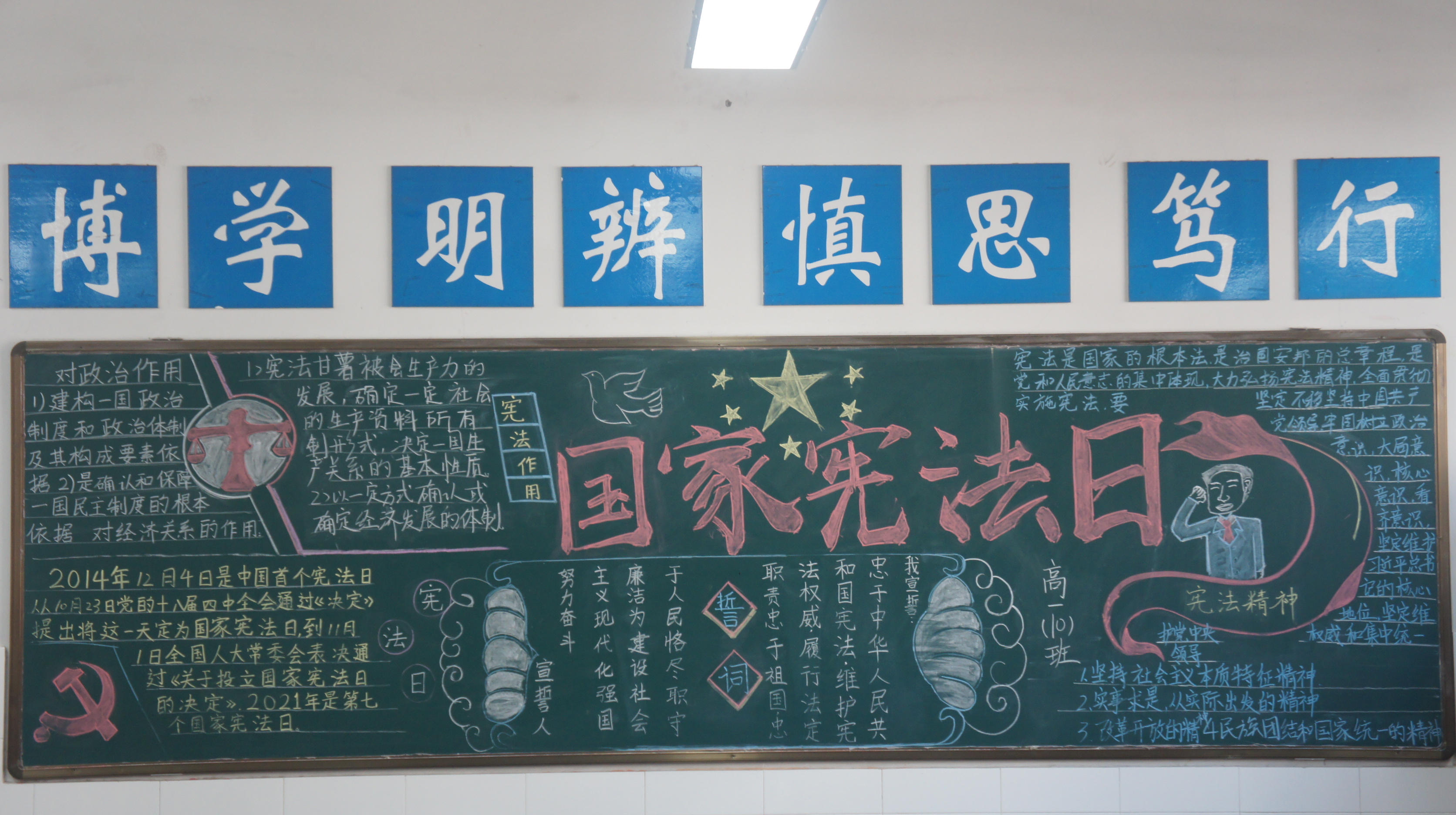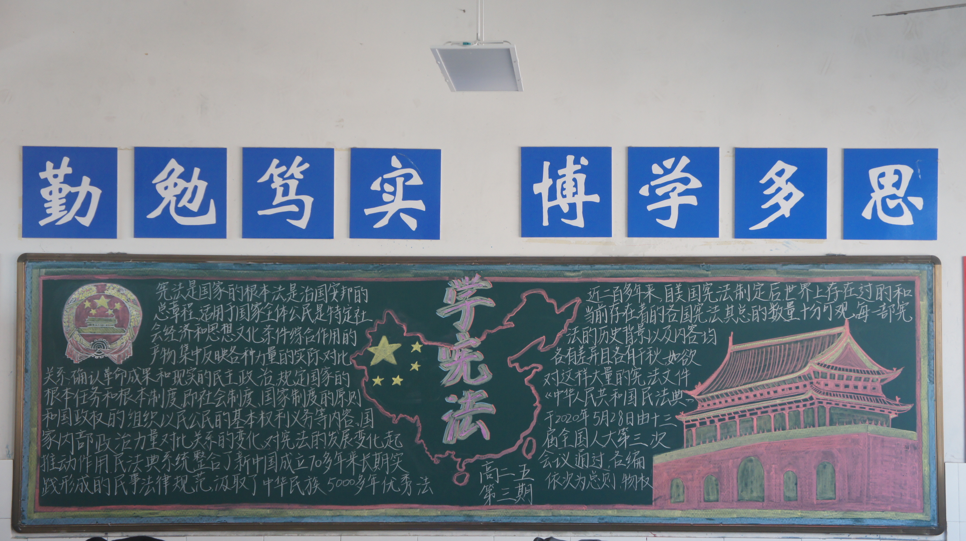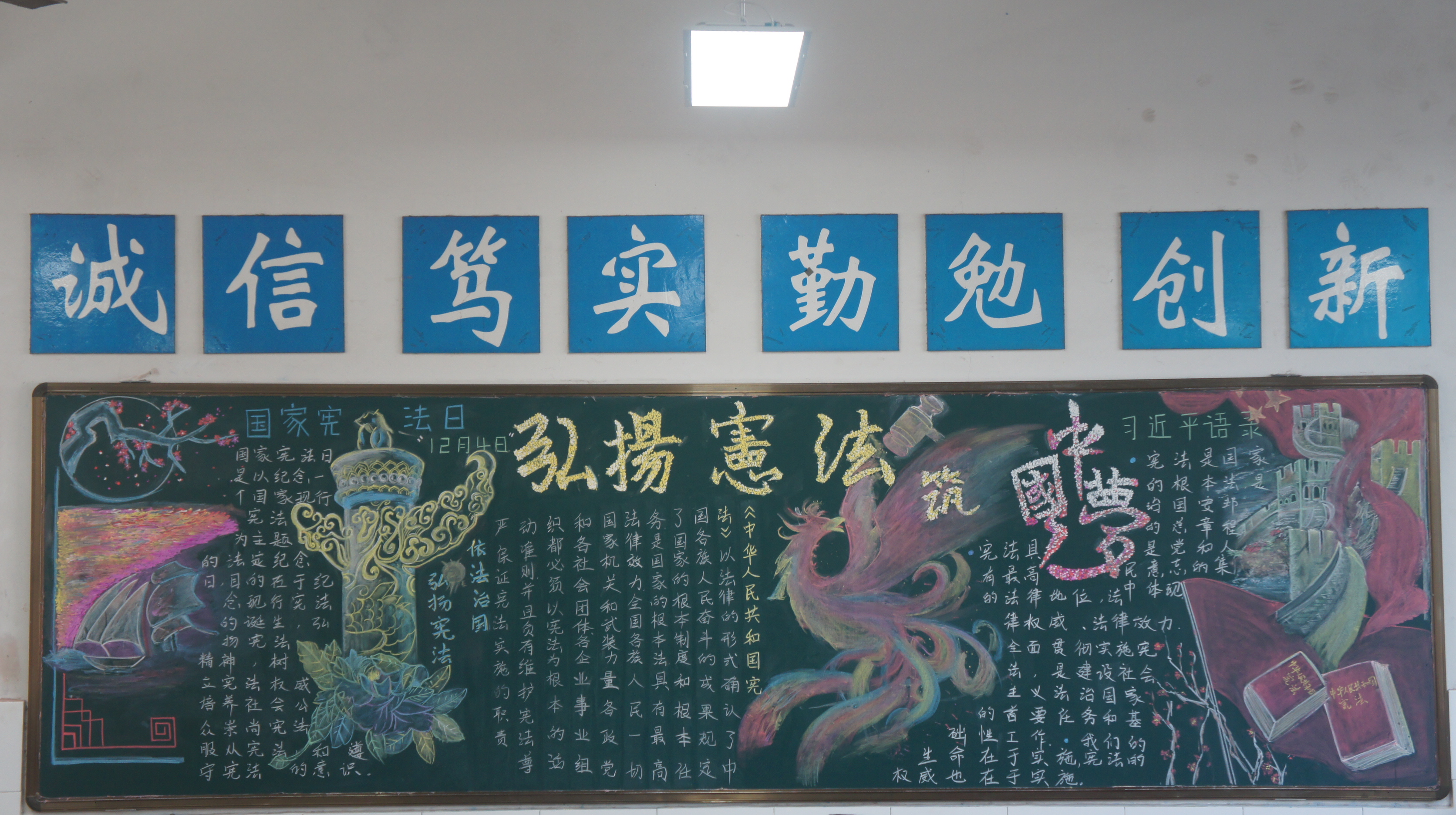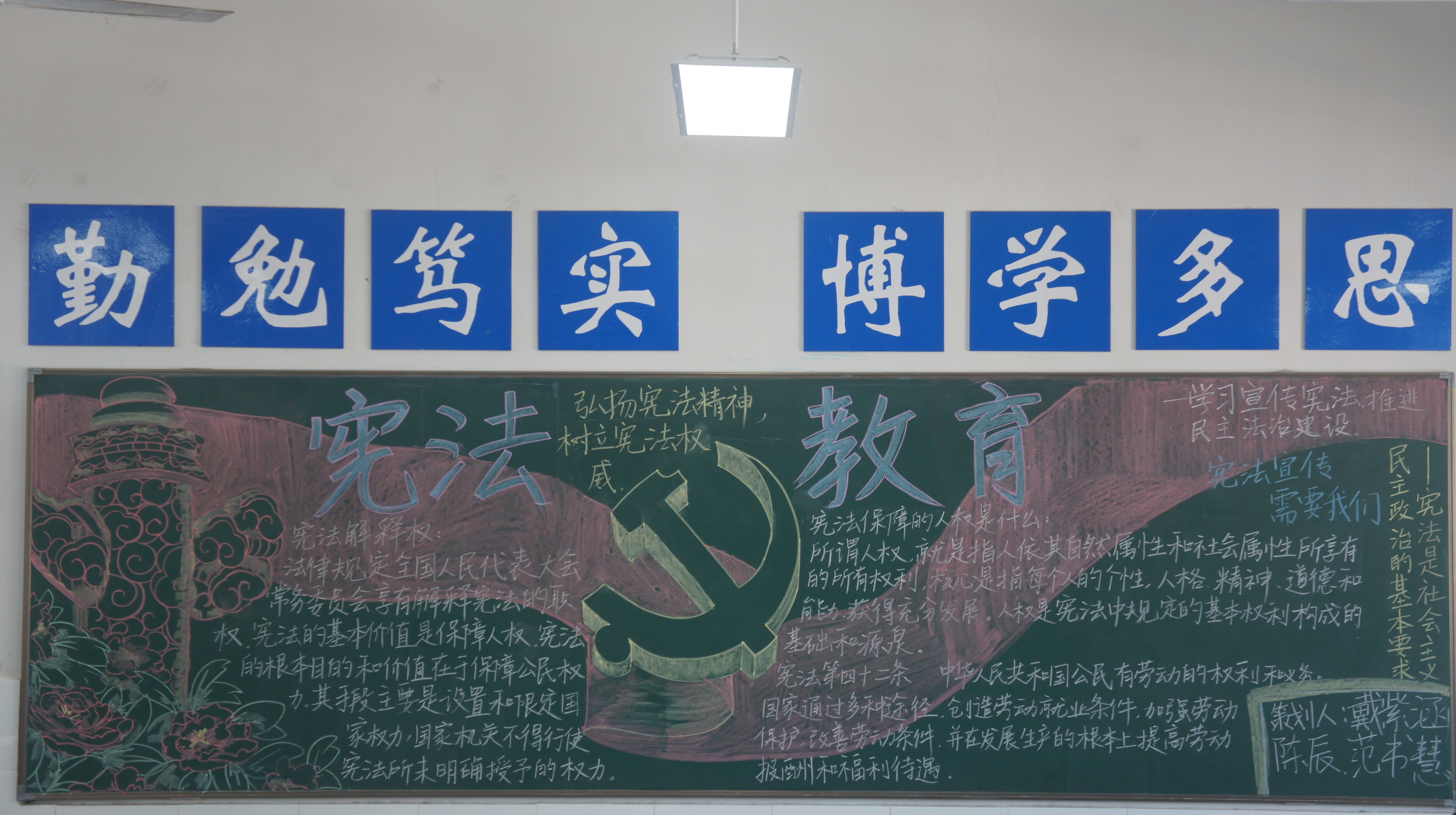 宪法是国家的根本大法,是治国安邦的总章程。为宣传国家宪法日主题教育,我校组织了一系列“学宪法 讲宪法”教育活动。我校团委联合学生处,对高一、高二年级组织开展了“学宪法 讲宪法”黑板报主题评比活动。