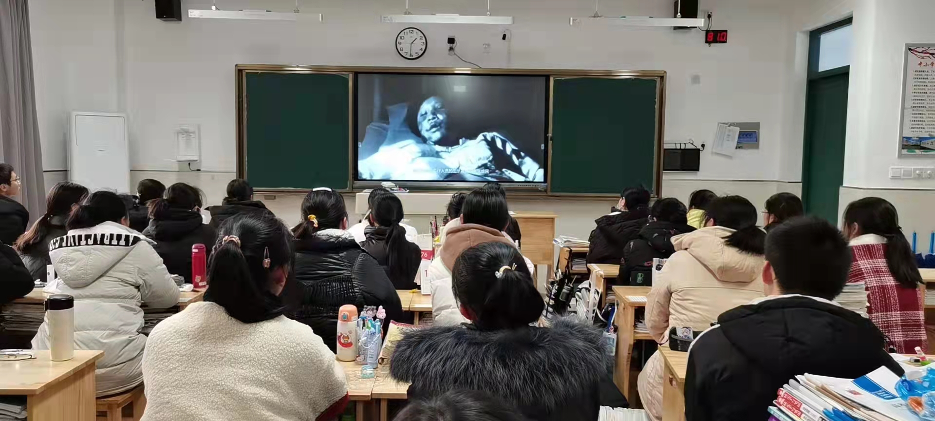 与青年团课同步进行的,是各班“国家公祭日”主题班会。在班主任的带领下,同学们观看了纪录影片《南京大屠杀》。触目惊心的画面,不仅让学生铭记住南京大屠杀惨绝人寰的历史,也激发了学生维护世界和平的决心。