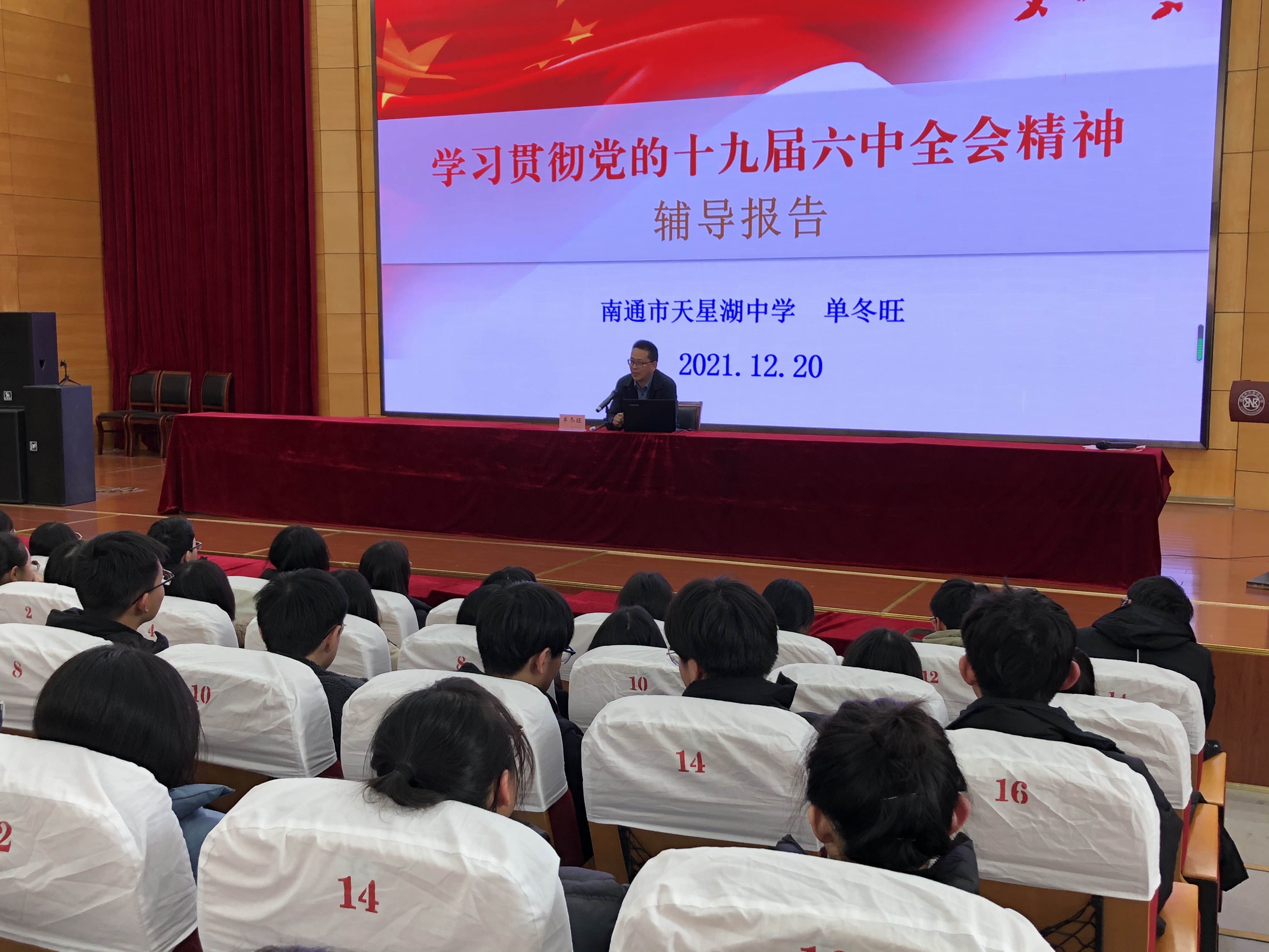 为深入学习十九届六中全会精神,引导学生坚定理想信念,努力成长为有理想、有本领、有担当的时代青年,12月20日下午,党委委员、副校长单冬旺应邀给高三团员青年,上了题为《学习贯彻党的十九届六中全会精神》的青年团课。