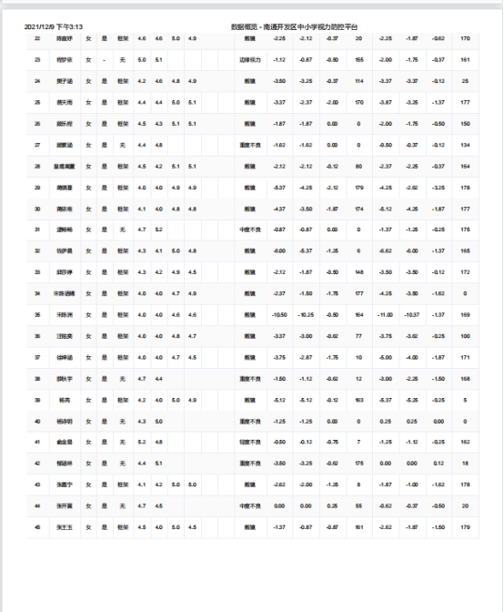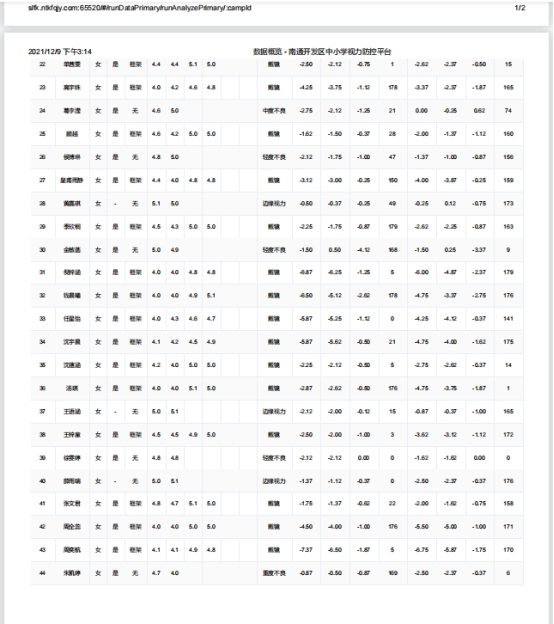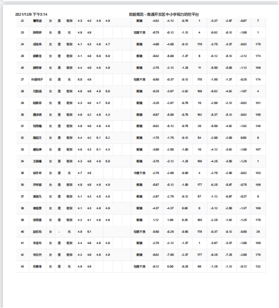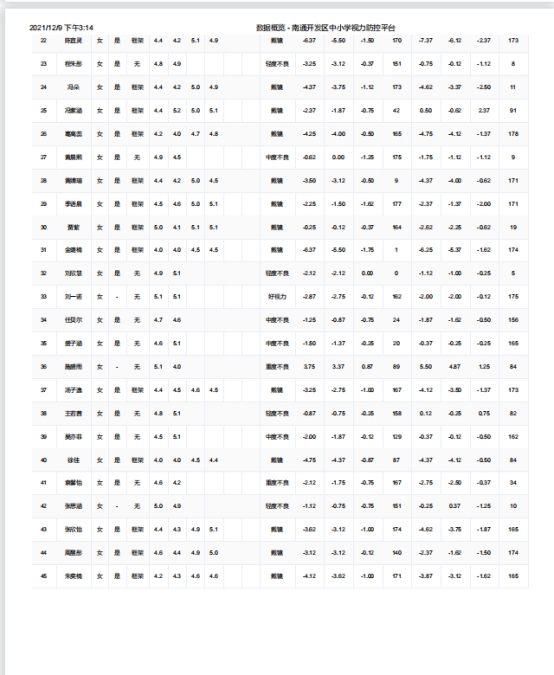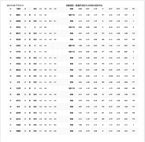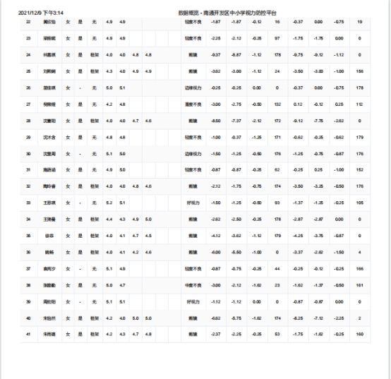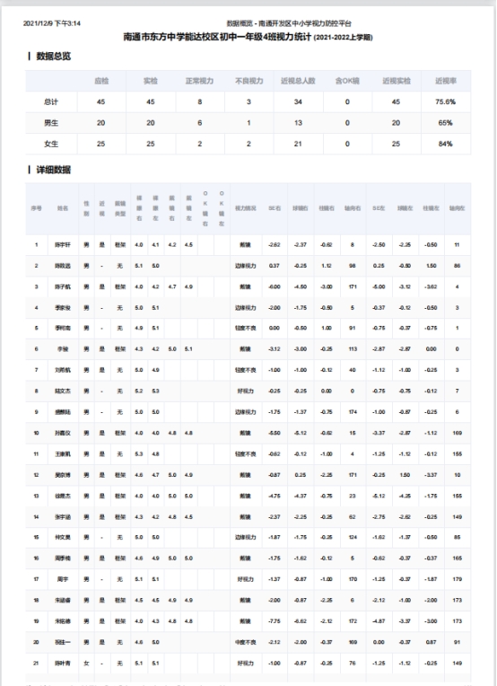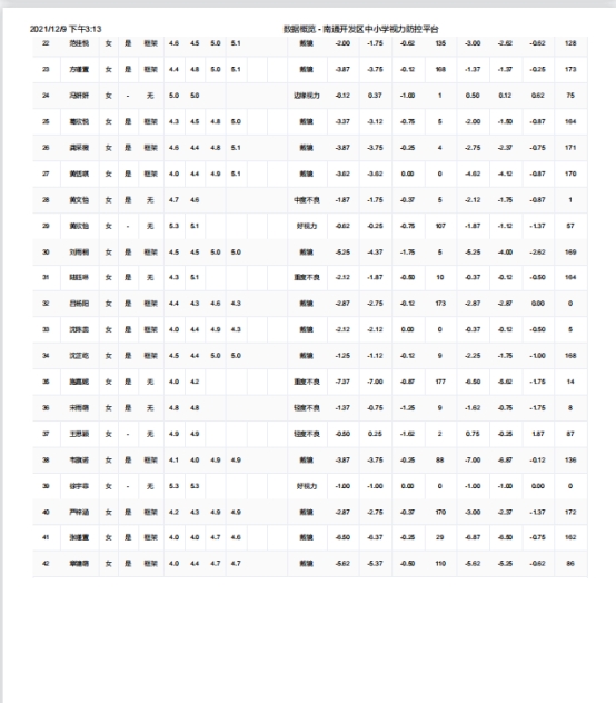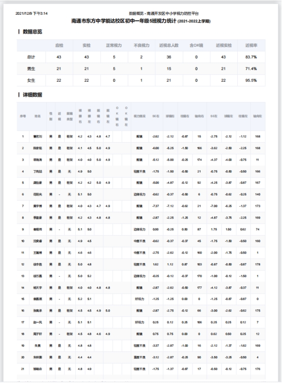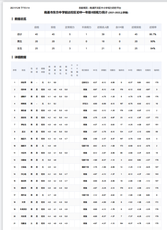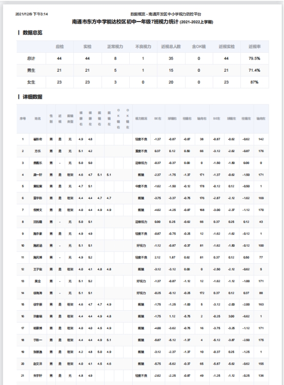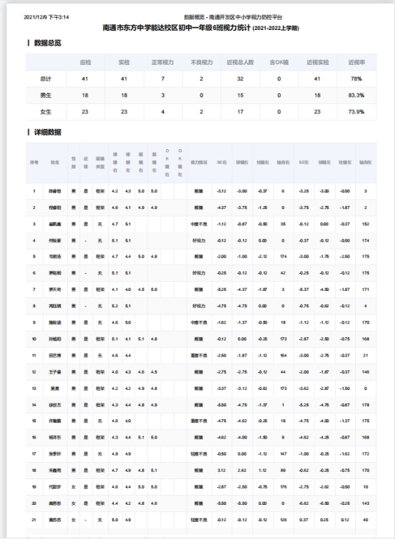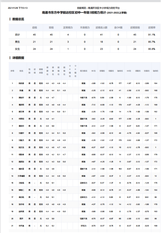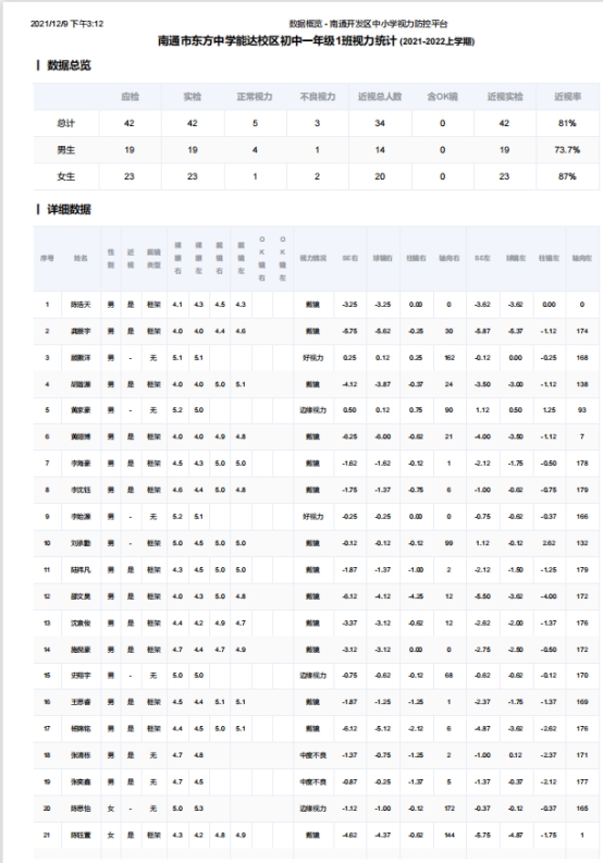 南通市东方中学能达校区初一年级各班学生视力情况公示