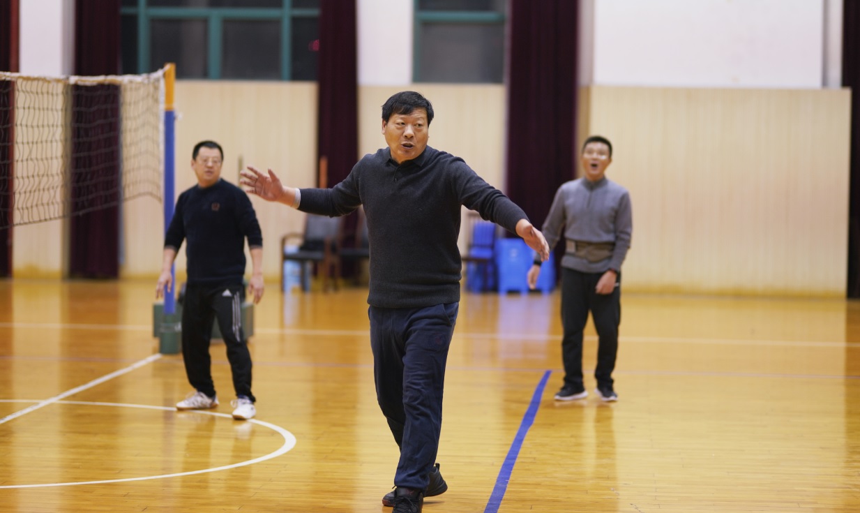 比赛现场,气氛热烈,队员们争先接球、拦球、传球、扣球……上场的老师们都成了一个个有“功夫”的“飞人”,一个个精彩夺目的瞬间交迭呈现。“快!接球!”“注意,拦球!”呐喊声、助威声、鼓掌声,不绝于耳。赛场上精彩对打、强力扣杀、机智轻吊、顽强救球、以快制快等各种技战术在老师们的较量中得以充分展现,同时不乏扣人心弦的紧咬比分,也有不时闪现的轻松幽默,比赛进程跌宕起伏。最后,王金杰队荣获冠军,管永宏队荣获第二名。