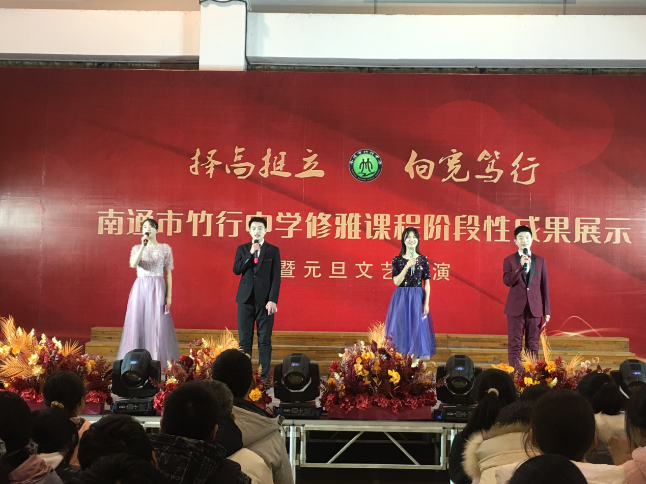 择高挺立,向宽笃行 ——南通市竹行中学修雅课程阶段性成果展示暨元旦文艺汇演活动在激情彭拜的大合唱中拉开帷幕。