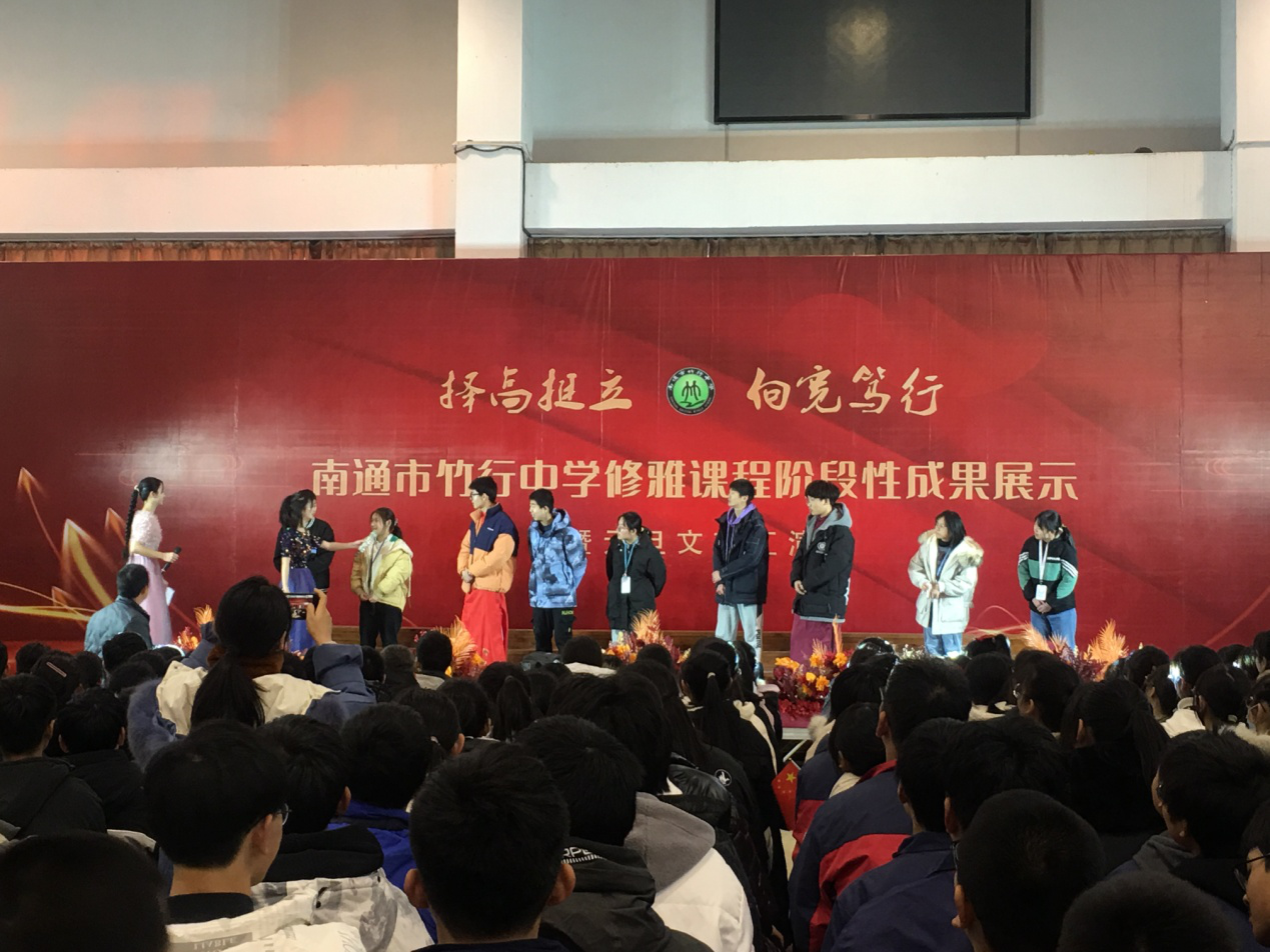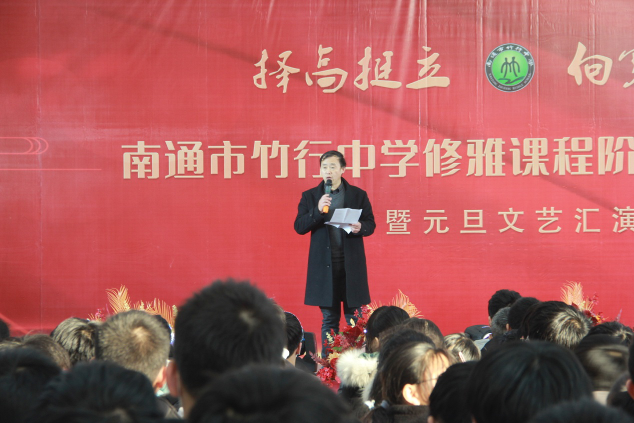为庆祝新年的到来,领会青春的美好,丰富师生的校园文化生活,12月29日下午,南通市竹行中学在健行楼二楼体育馆举行“择高挺立,向宽笃行 ——南通市竹行中学修雅课程阶段性成果展示暨元旦文艺汇演活动”。