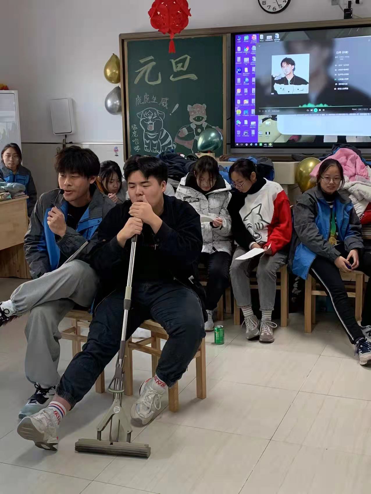 有的班级还进行了趣味游戏,校园里欢声笑语不断,热烈的掌声和阵阵喝彩声此起彼伏,师生欢聚一堂,共同表达着对新年的美好祝愿,整个学校洋溢着欢乐、祥和与温馨的氛围。
