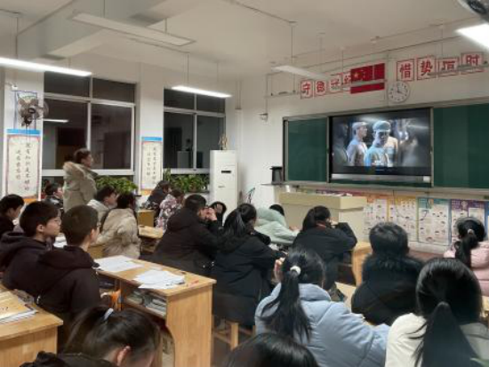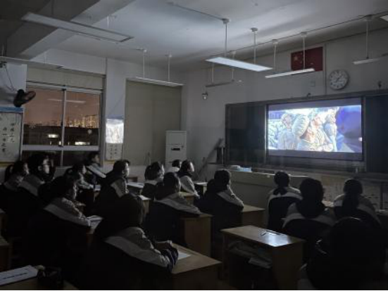 观看结束后,同学们积极畅所欲言,尽情抒发和交流观后所思所感。通过本次活动,培养了学生的爱国主义情感,同学们在电影中感受到了如今和平富足生活的来之不易。