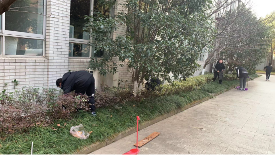 同学们积极热情,准时到位,配合协调,各类垃圾在同学们的配合下应声入袋,老师也加入了卫生清理的队伍,指导同学们的卫生方位及标准。