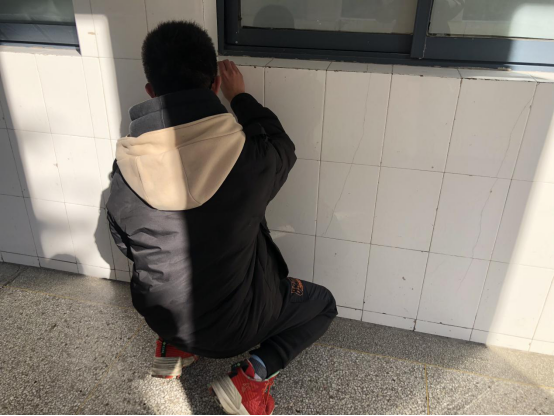 在楼道里的同学,手里紧握抹布,搜寻着清洁目标,全神贯注,一丝不苟。最终,各班一片整洁,楼道里,墙面洁白如玉。