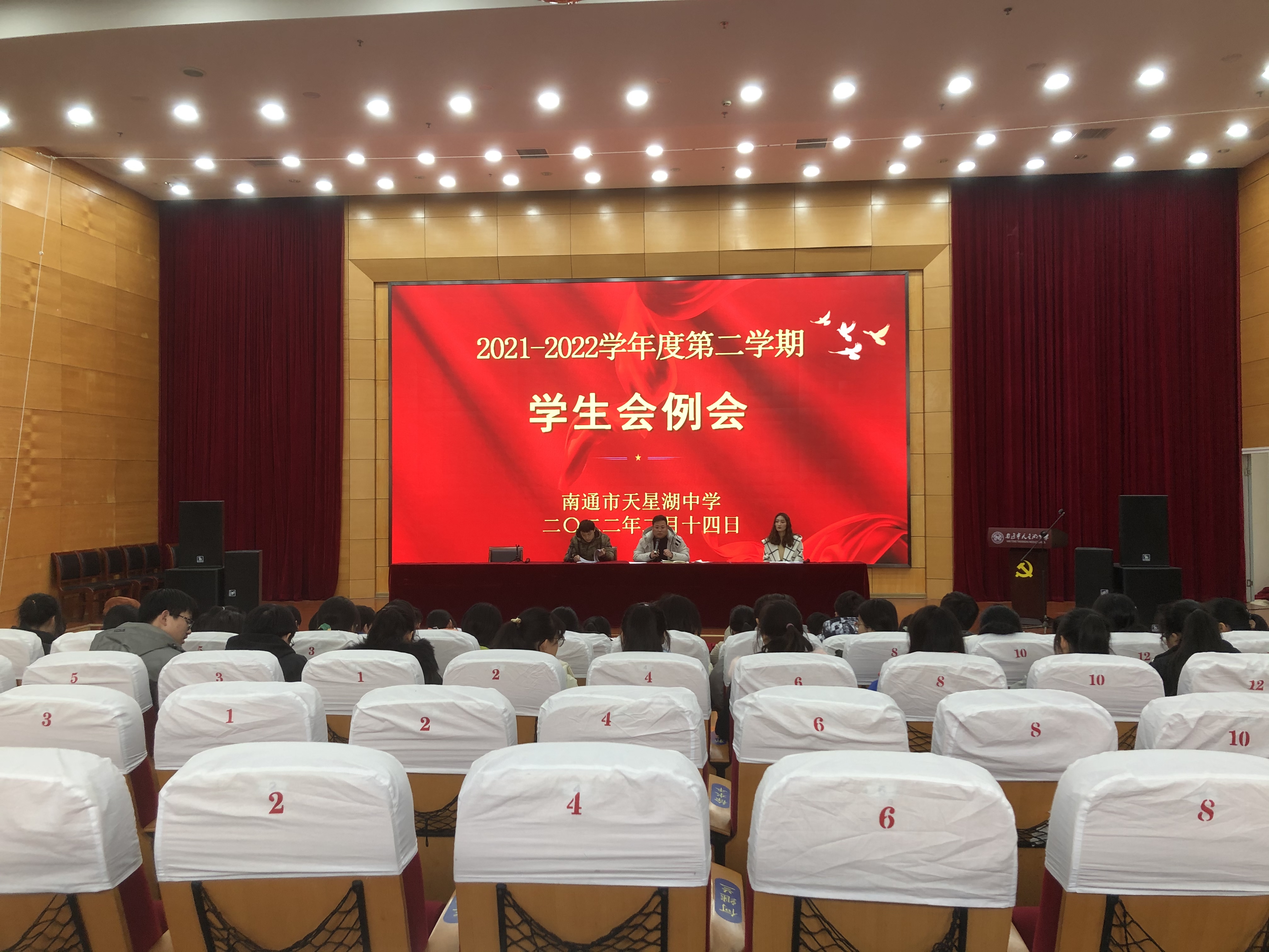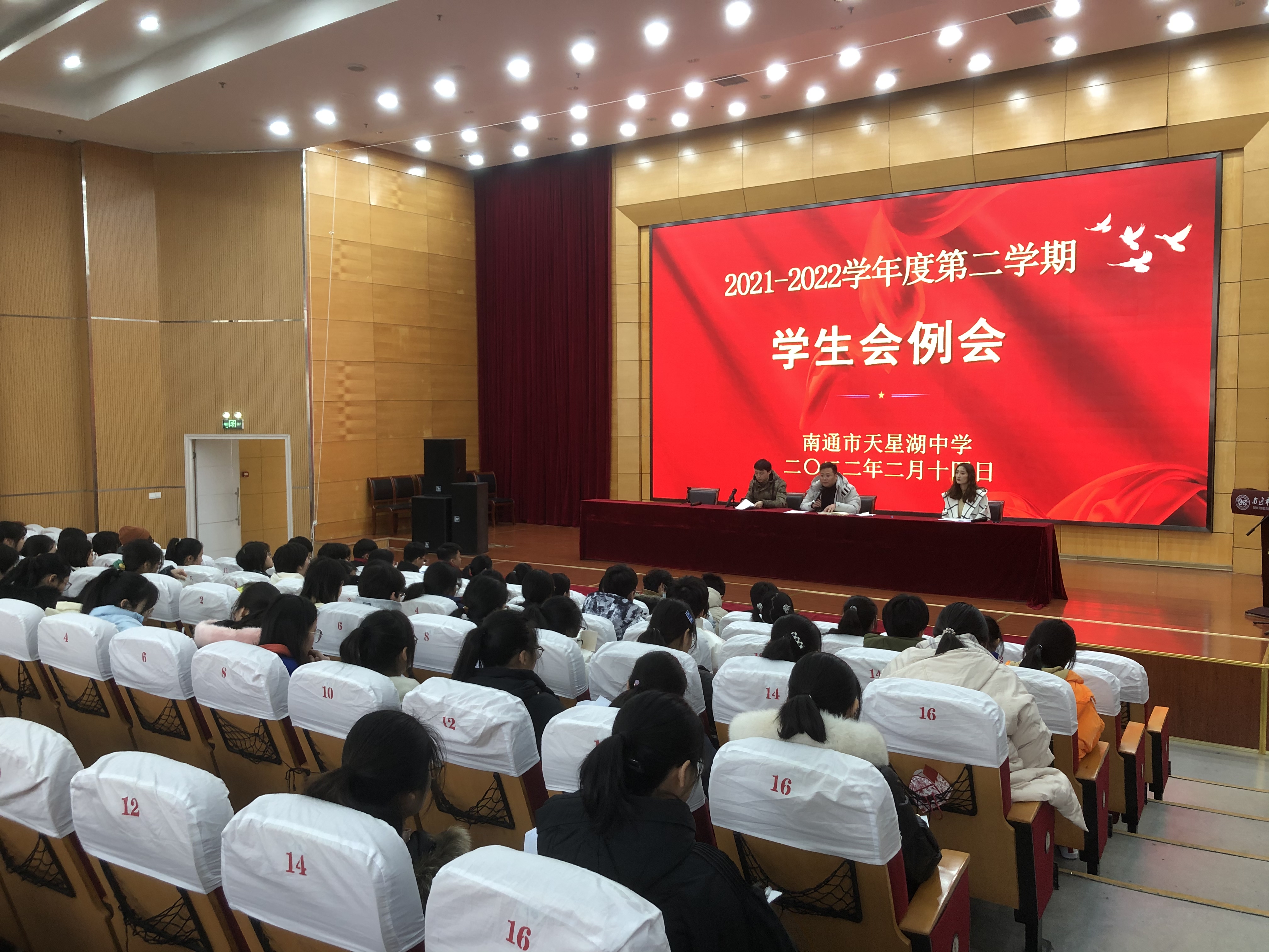 为加强学校的常规管理,培养学生的主人翁精神和民主监督意识,指导新学期学生工作顺利进行,我校学生处、团委两部门于2月14日中午在报告厅召开新学期学生会工作会议。会议由团委书记沈亚威老师主持,团委委员张甜甜老师、陈桐老师,学生会全体成员以及各班团支书参加。