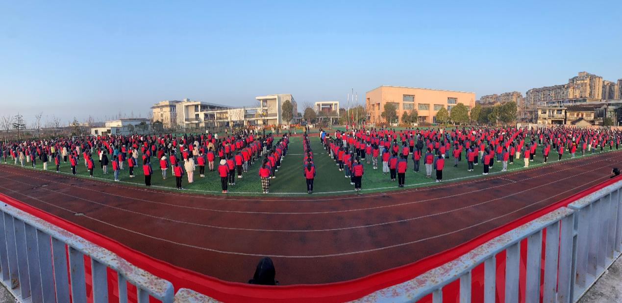 五星红旗冉冉升起,在全体师生神圣的注目中,开学典礼正式开始。