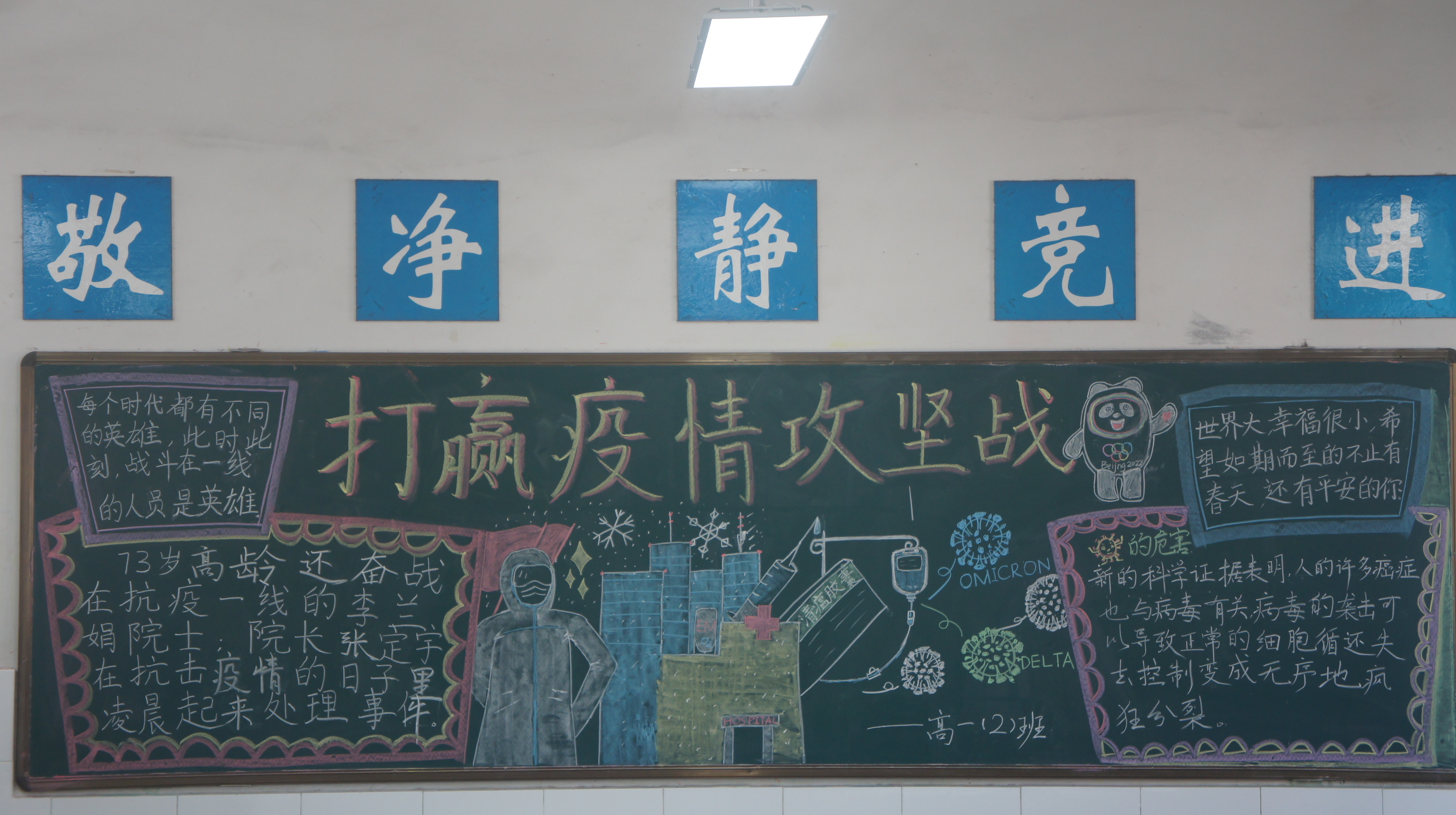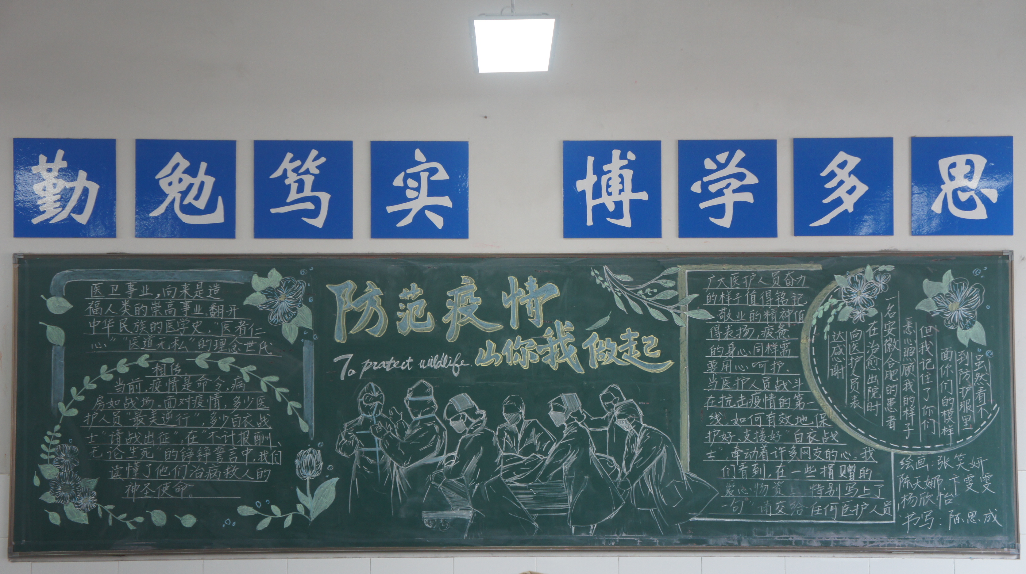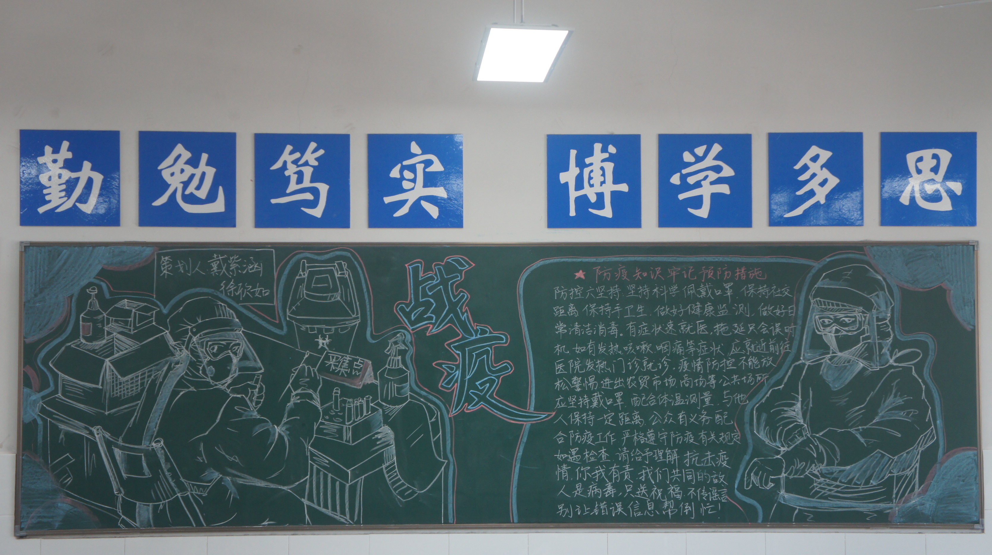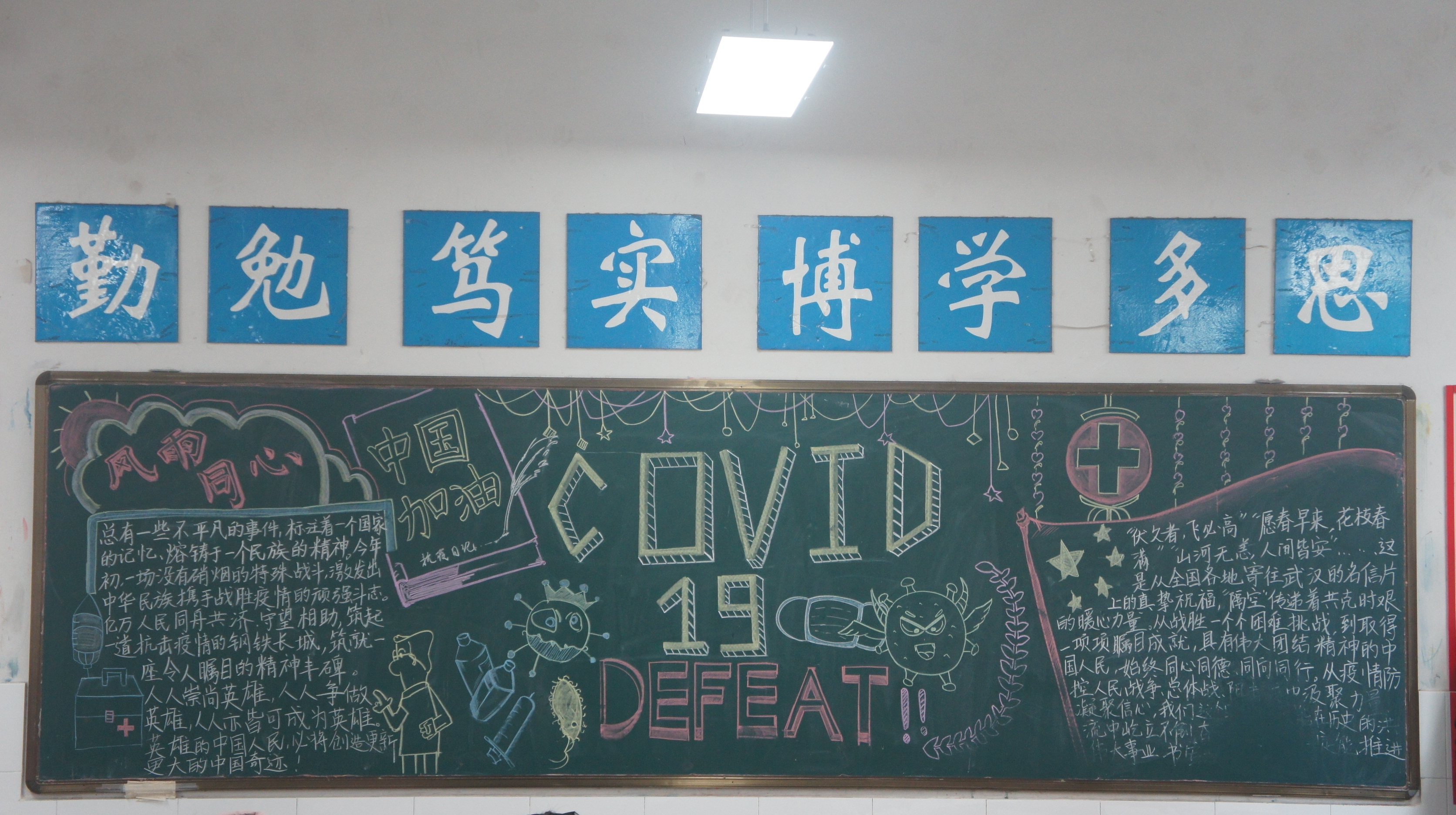 各班级学生积极搜索相关疫情防控的注意点,以“抗击疫情”为主题,向同学们宣传疫情期间的防护小知识,诉说抗疫英雄的伟大事迹。各班的黑板报都做到了主题思想突出,教育意义鲜明,图文设计美观、新颖;有的突出文字魅力,有的画面夺人眼球,展示出班级独有的特色。