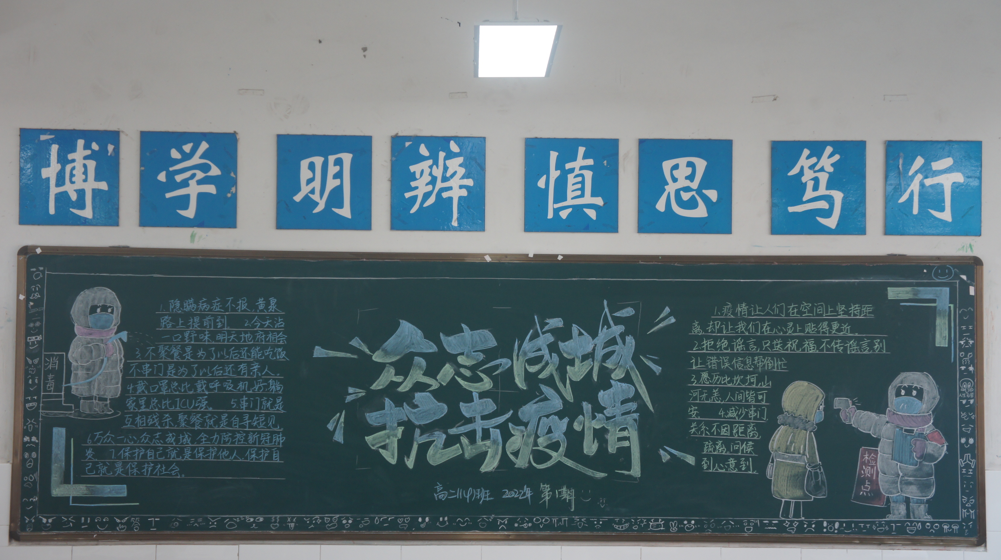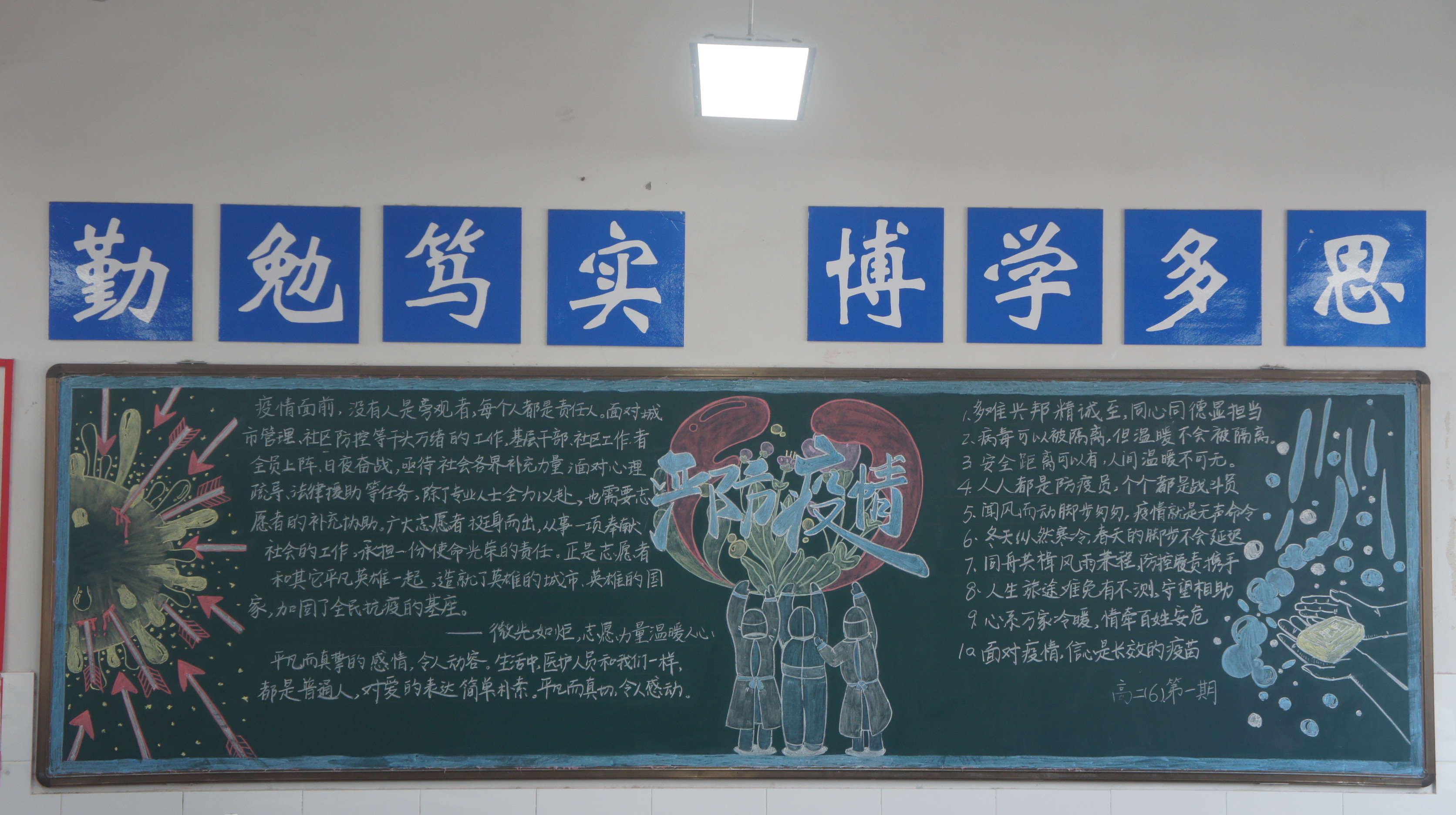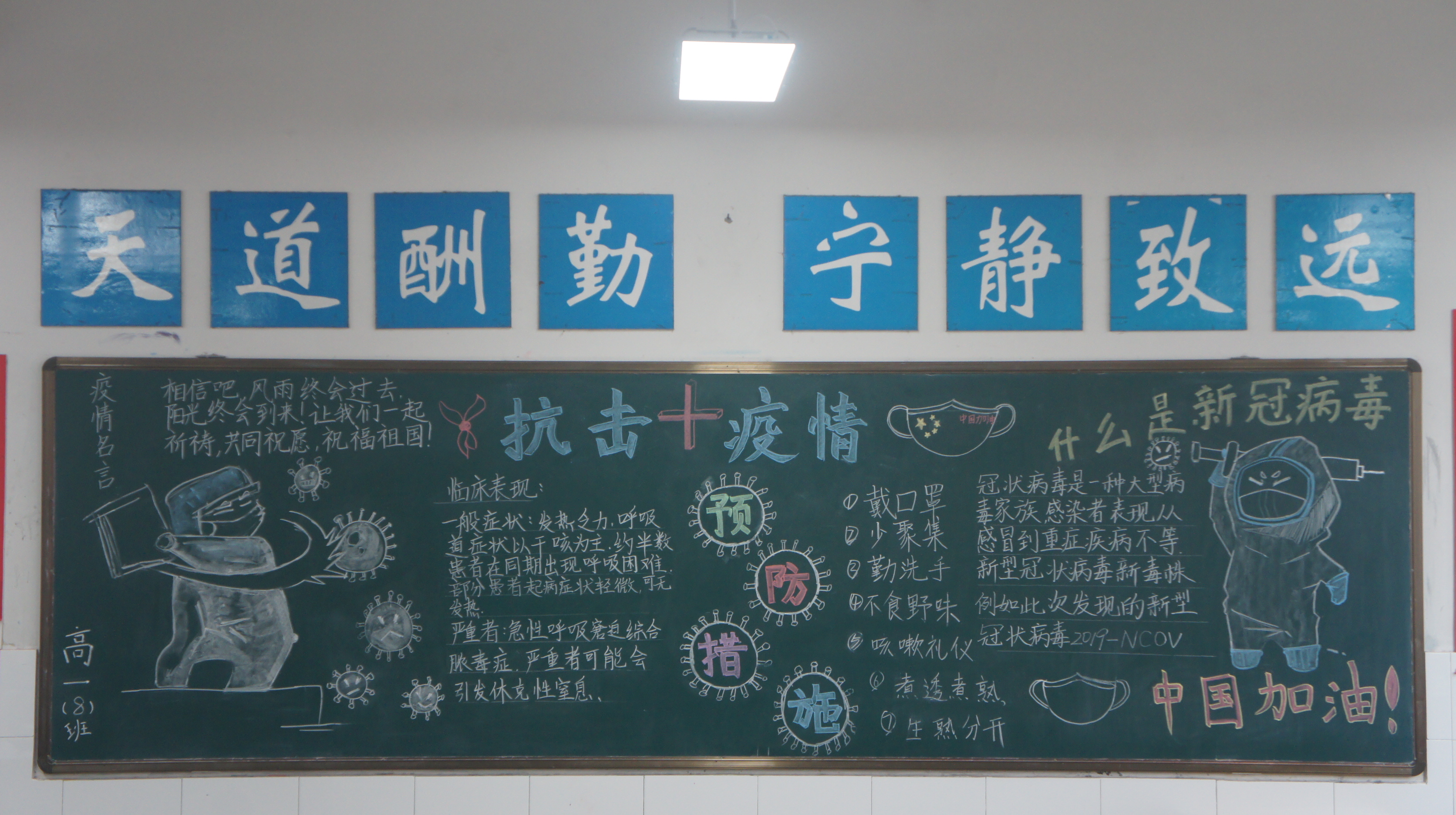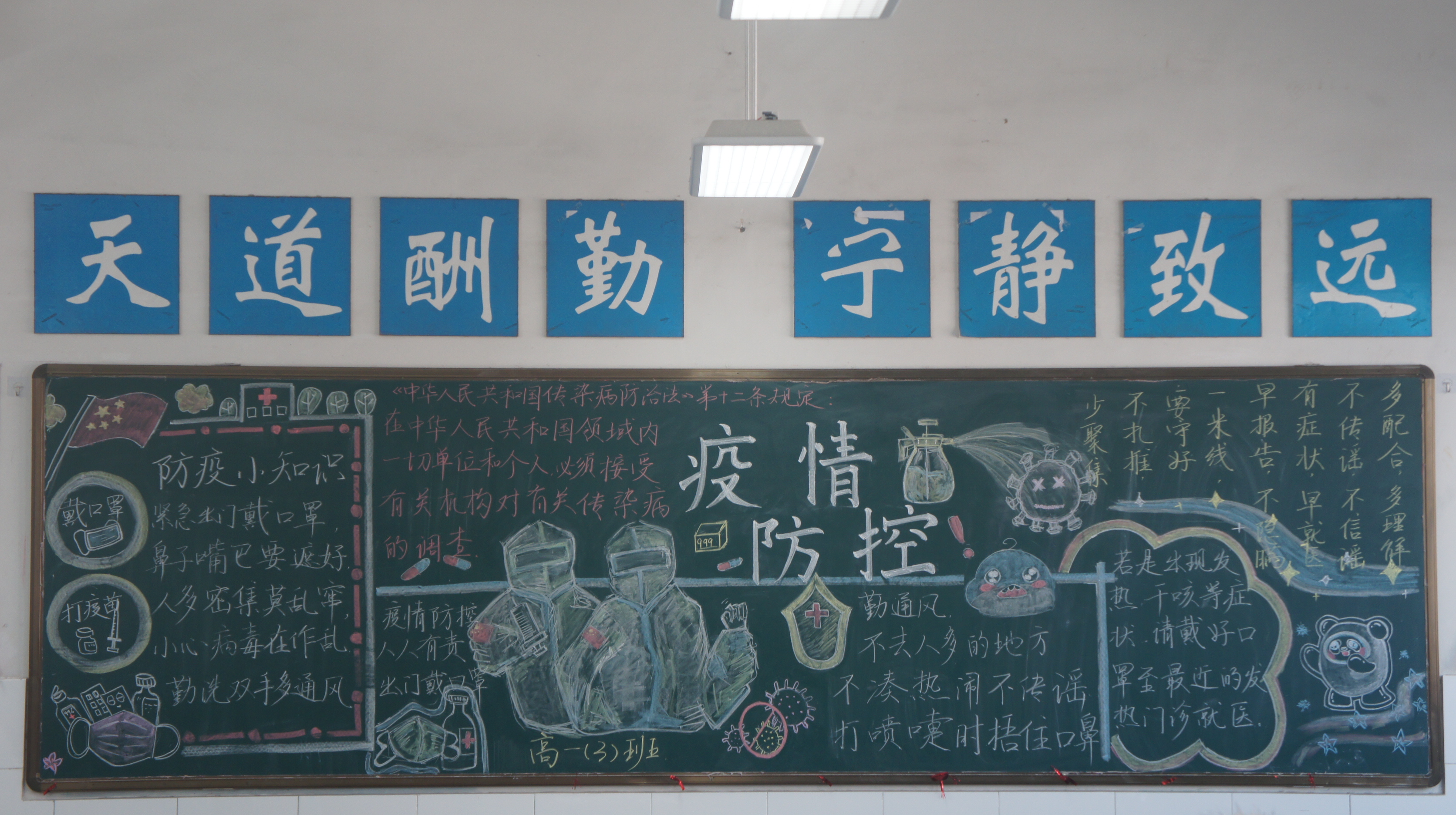 冬季还未离去,各类传染病尚处于爆发期。近期各地新冠肺炎疫情局势紧张,面临开学,学校防疫的脚步断然不能停歇。我校近期安排各班班主任积极召开疫情防控相关主题班会,并安排高一、高二各班级设计疫情防控主题板报,积极宣传疫情防控相关知识。