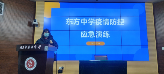 为坚决打赢校园疫情防控阻击战,切实保障师生健康和校园公共卫生安全,进一步提高学校应对疫情的处置能力2月21日,东方中学组织各部门负责人、全体班主任开展了疫情防控应急处置演练活动。活动分两个校区同步进行。