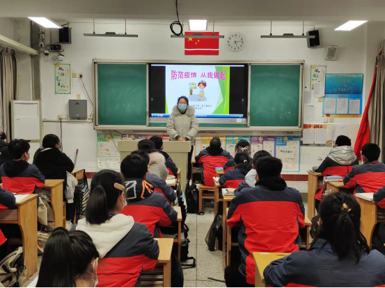 班会上,班主任向学生们详细介绍了什么是春季常见传染病、什么是冠状病毒、感染患者的临床表现、病例特点以及中学生如何预防新型冠状病毒感染。