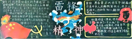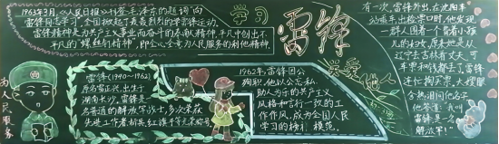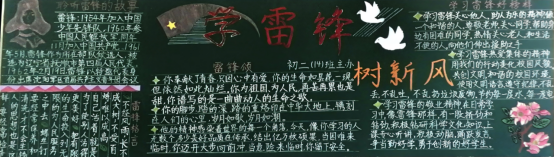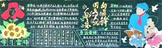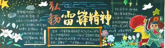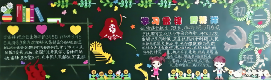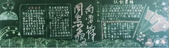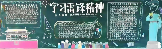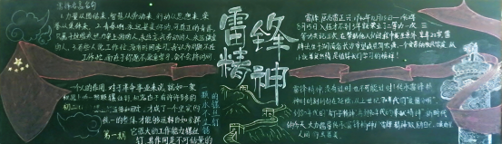 在评比活动中,各班积极参与,积极寻找素材,精心设计板报,以丰富多彩的形式在黑板报上展示了学雷锋、树新风等宣传内容。同学们把对雷锋叔叔的尊敬和怀念之情融入到了黑板报创作之中,板报追述了雷锋的事迹,赞扬了他的钉子精神,歌颂了他全心全意为人民服务的品质。