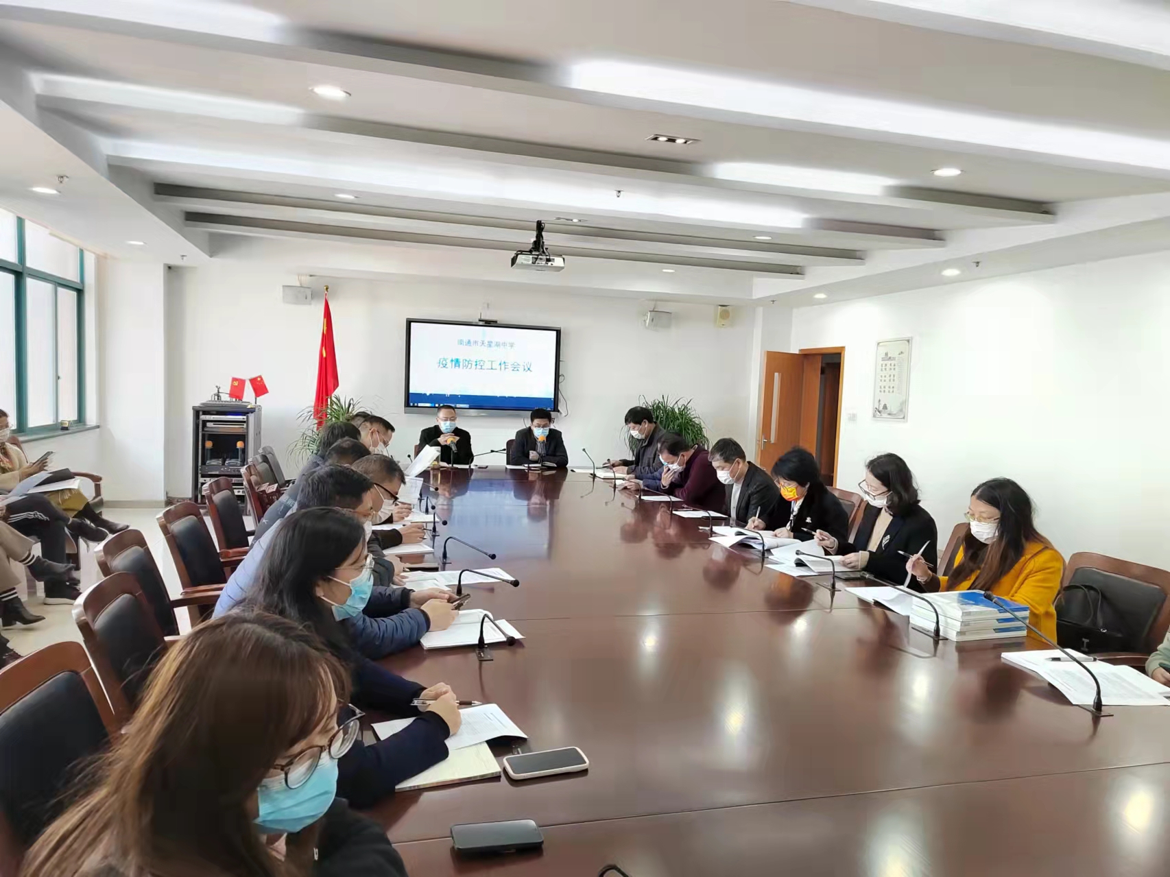 为了贯彻市疫情防控工作会议精神,进一步做好校园疫情防控工作,维护师生安全,3月9日中午,我校在滋兰楼6楼西会议室召开校园疫情防控工作会议。会议由吴冬杰副校长主持,党政办、学生处、后勤、物业等负责人、全体班主任参加会议。党委书记、校长戴继华亲临会议并作重要指示。