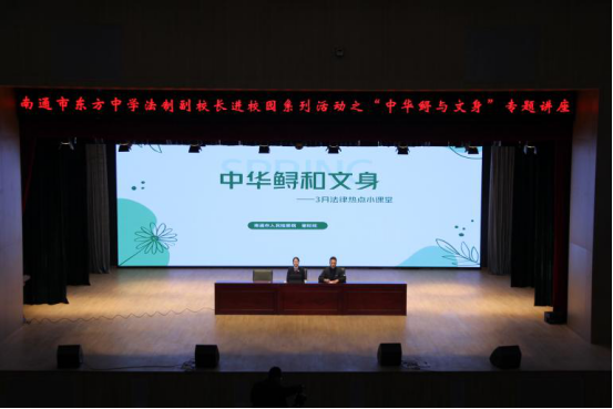 【润心德育·法制教育】3月法律热点小课堂:中华鲟和文身——记南通市东方中学法治副校长进校园系列活动