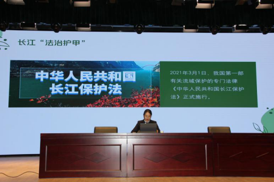 宣讲会上,谢副校长首先重点讲解了有关长江大保护的相关法律条文,从“长江是文明的摇篮与尴尬的处境”、“共抓大保护、不搞大开发”、“十年禁渔”以及专门的流域法三方面向孩子们讲明为何要保护长江,并且学会知法守法。同时,她用简单实用的法律知识和通俗易懂的语言,解读了一些发生在我们身边的违法案例。生动的讲解与短小精悍的视频让孩子们全神贯注。
